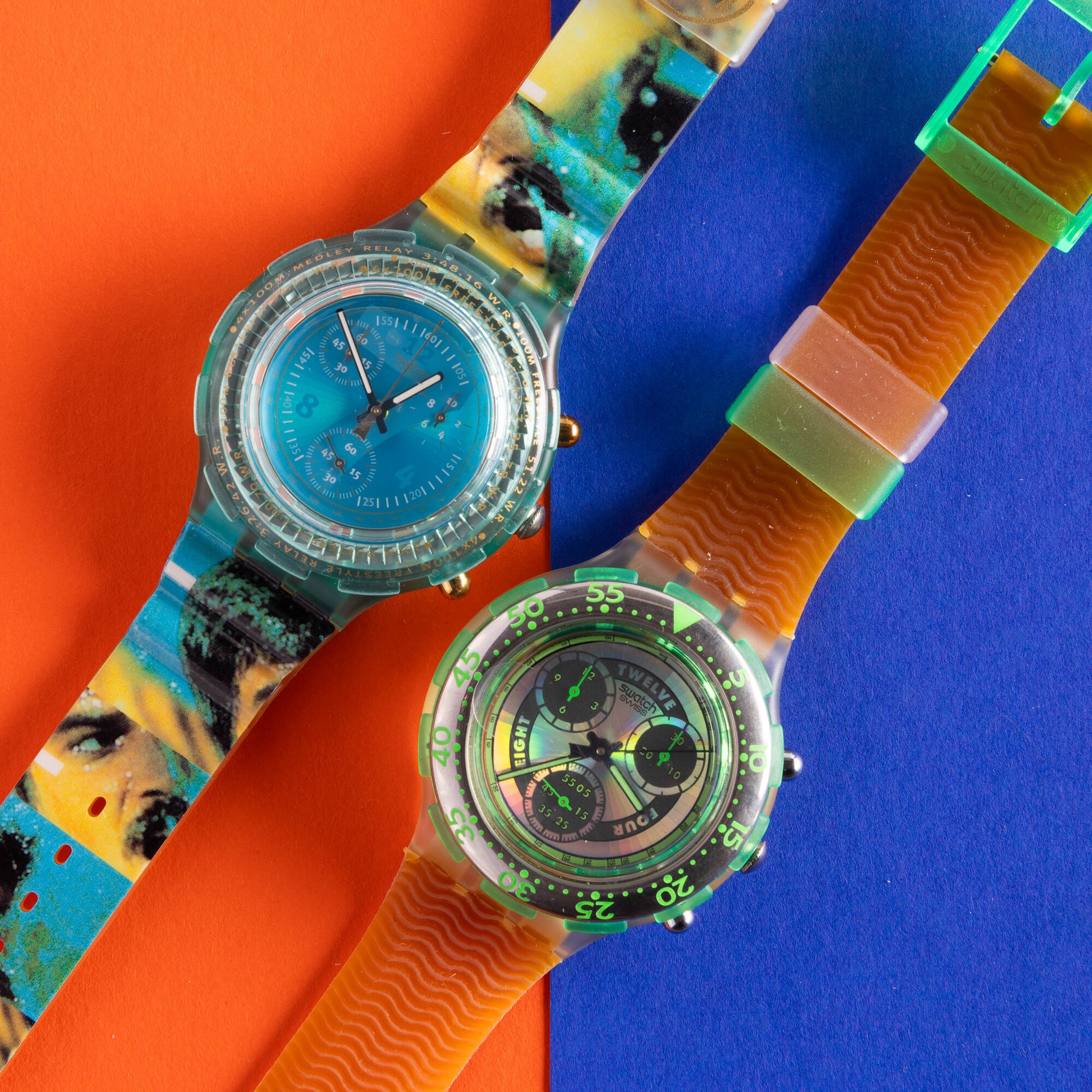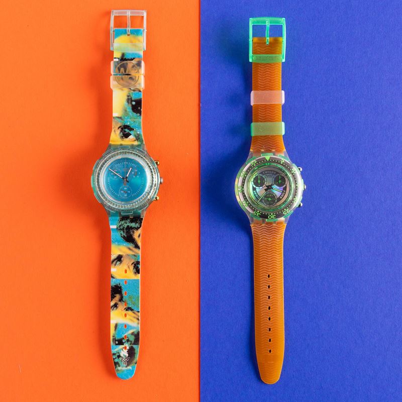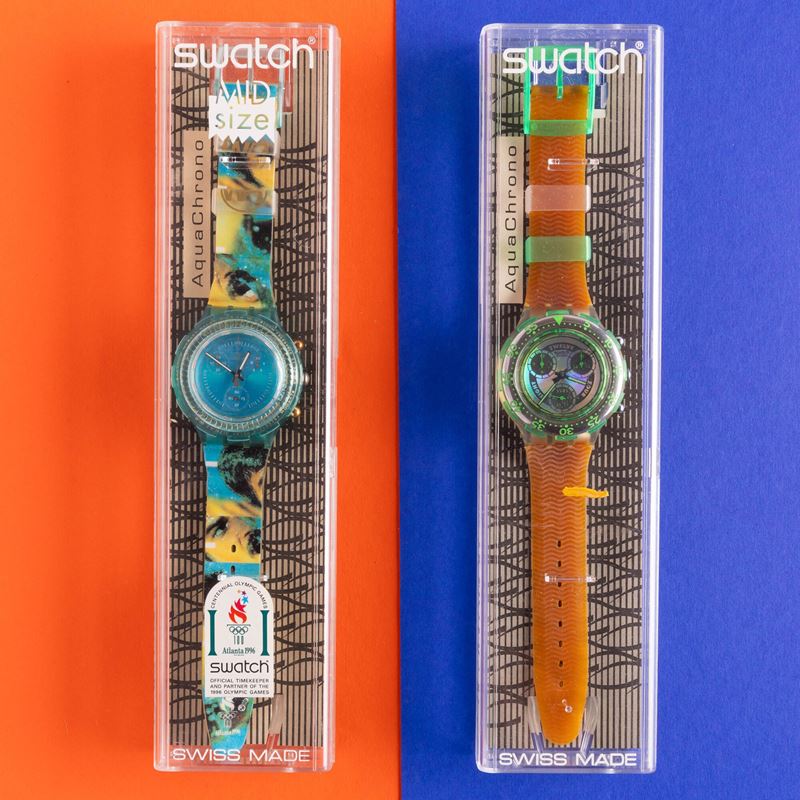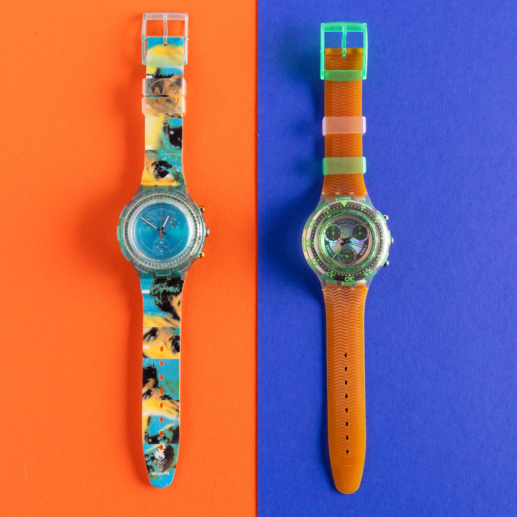 Due Swatch Aqua Chrono NOS: Swatch Aqua Chrono Mark Spitz Swatch Aqua Chrono Sirena