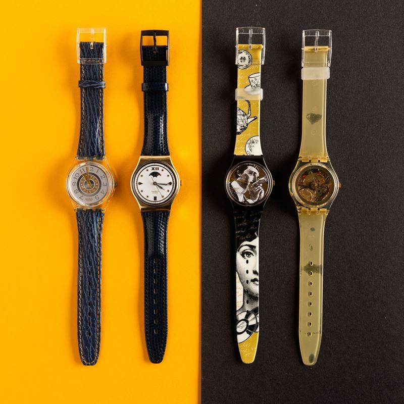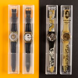 Quattro Swatch NOS: Swatch Delave Swatch C.E.O. Moonphase Swatch Baiser d'Antan Swatch Golden Jelly