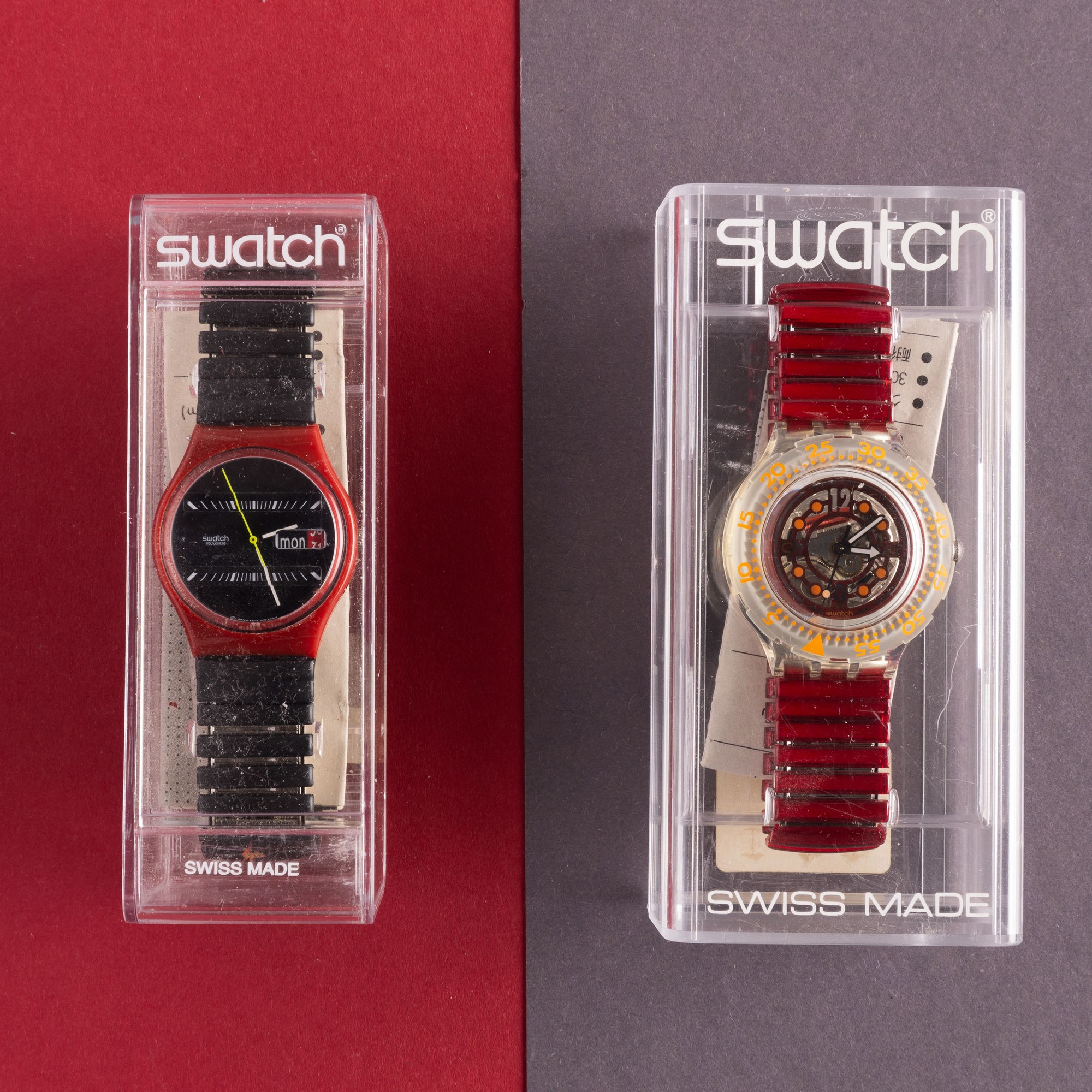 Uno Swatch bracciale elastico e uno Swatch Scuba con bracciale elastico NOS: Swatch Voltage Swatch Scuba Red Marine