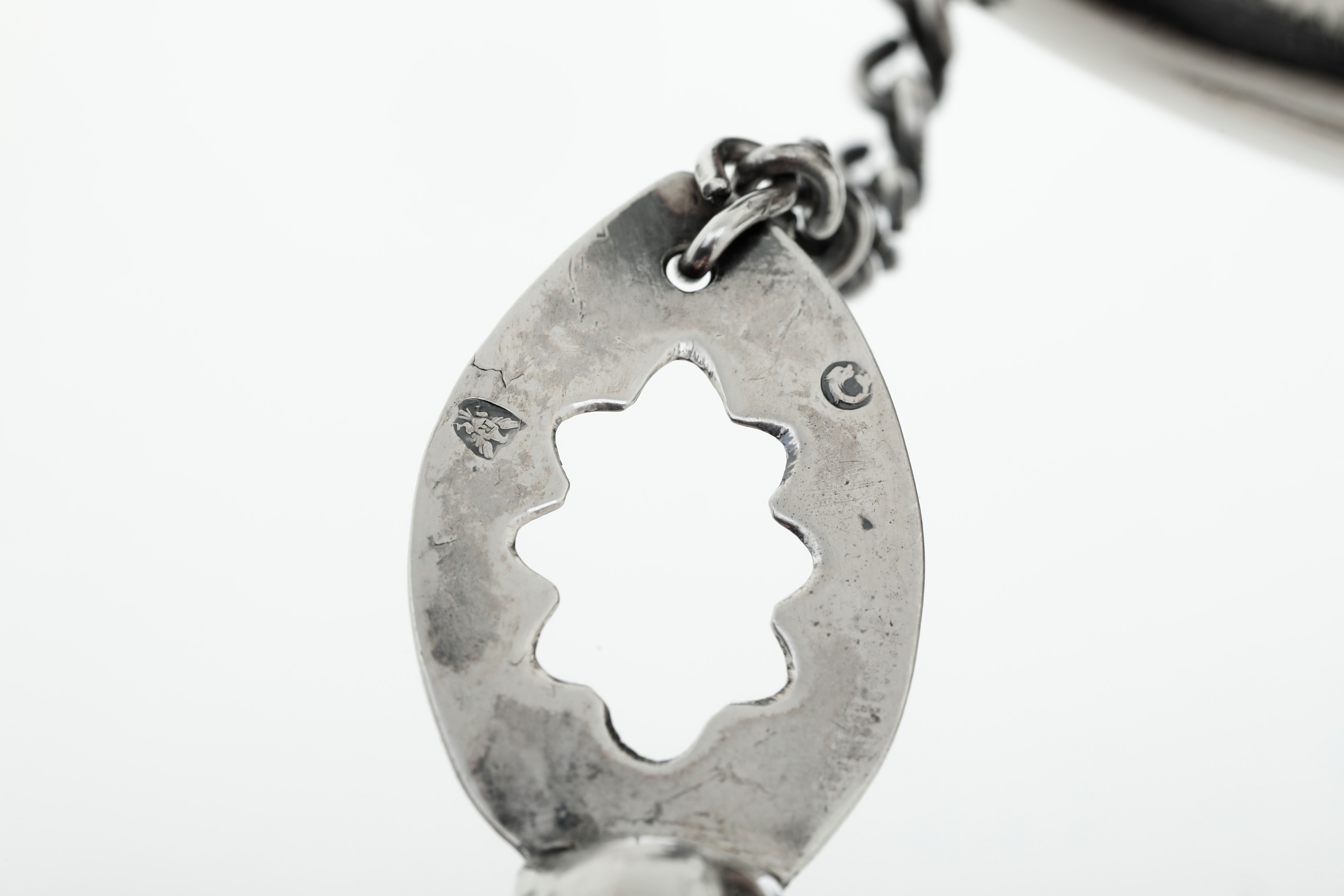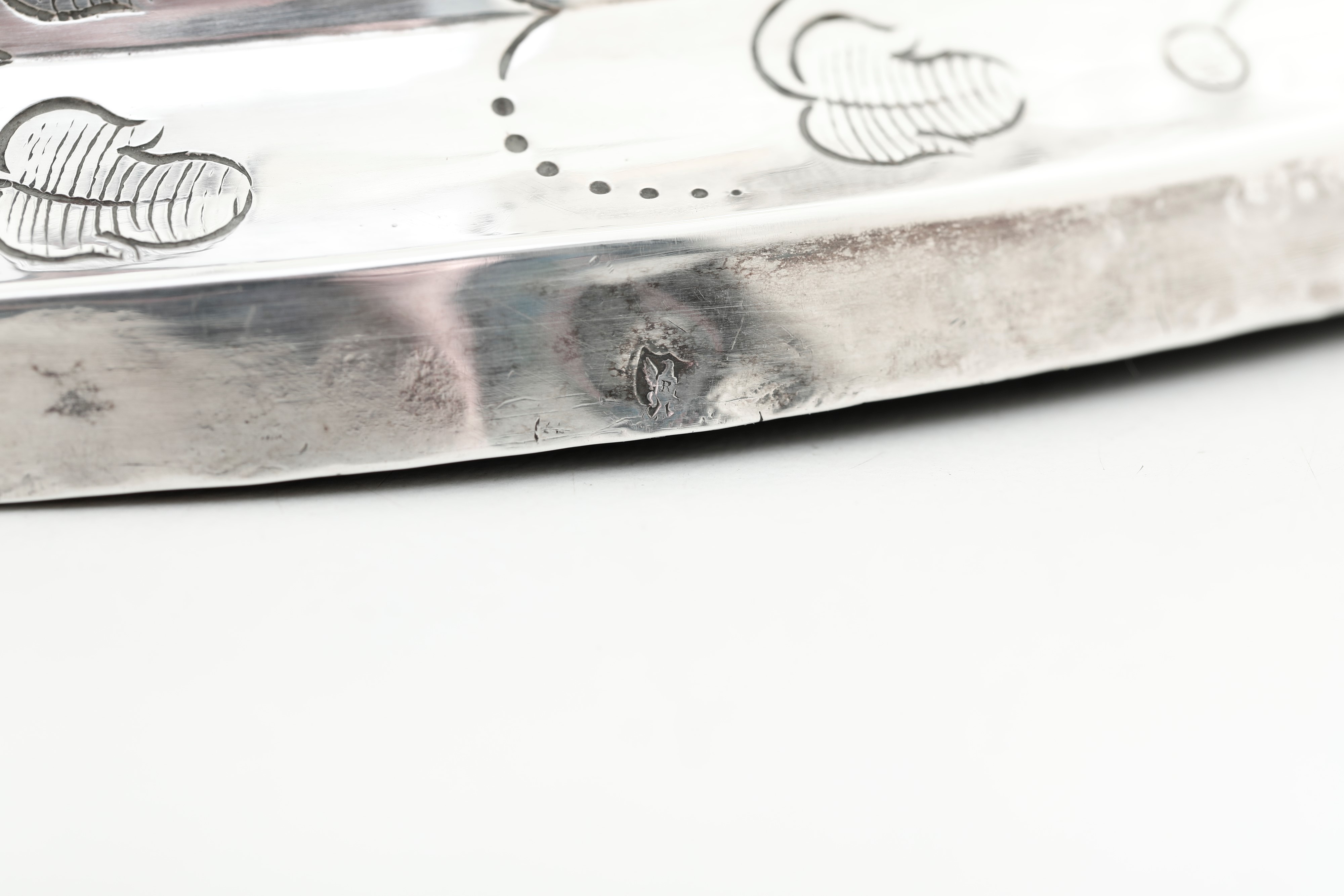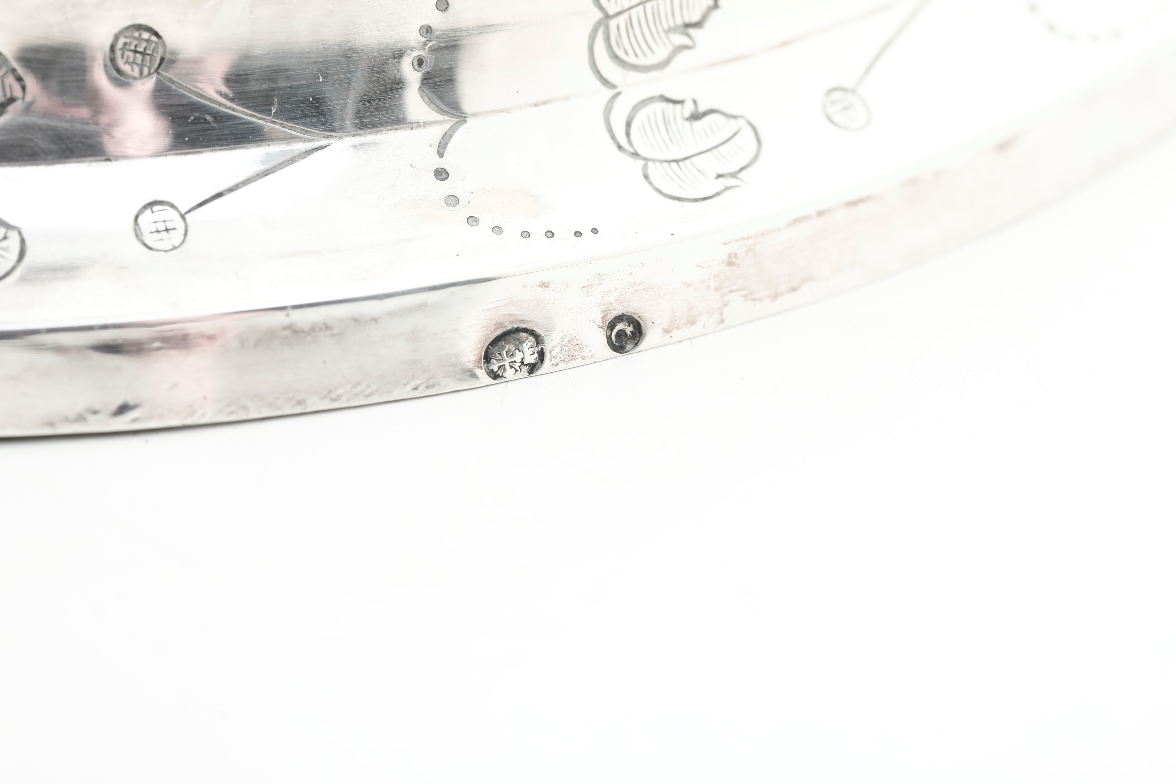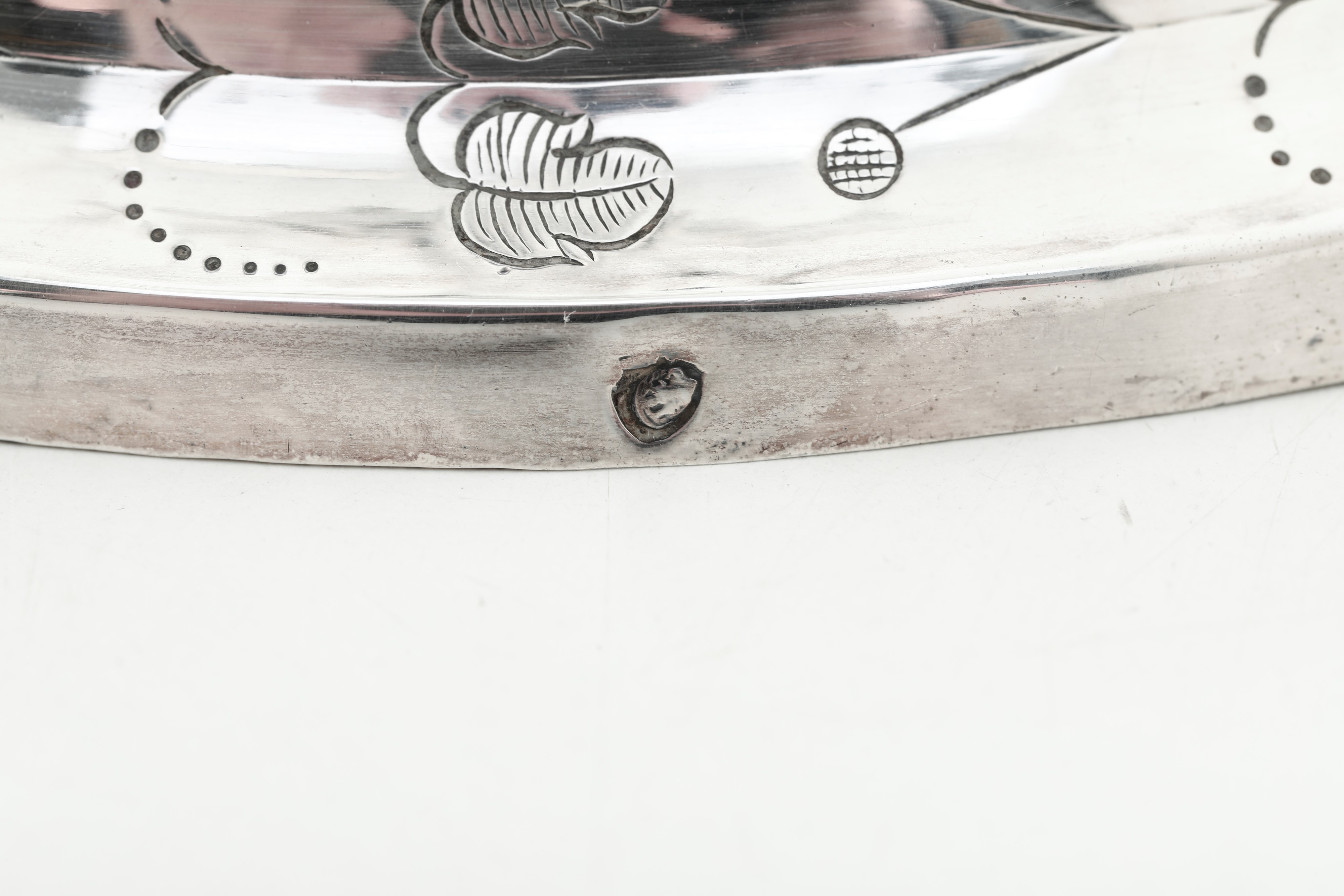 Marks in use from 1805 to 1808 and marks with dolphin and Mauritian cross. Molten, embossed and chiselled sterling silver