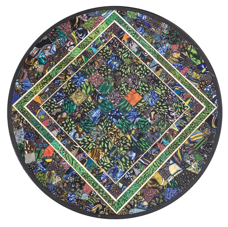 Gueridon con piano in marmo con commesso di paste vitree policrome e murrine, attribuito a Francesco Sibilio. Roma, prima metà XIX secolo