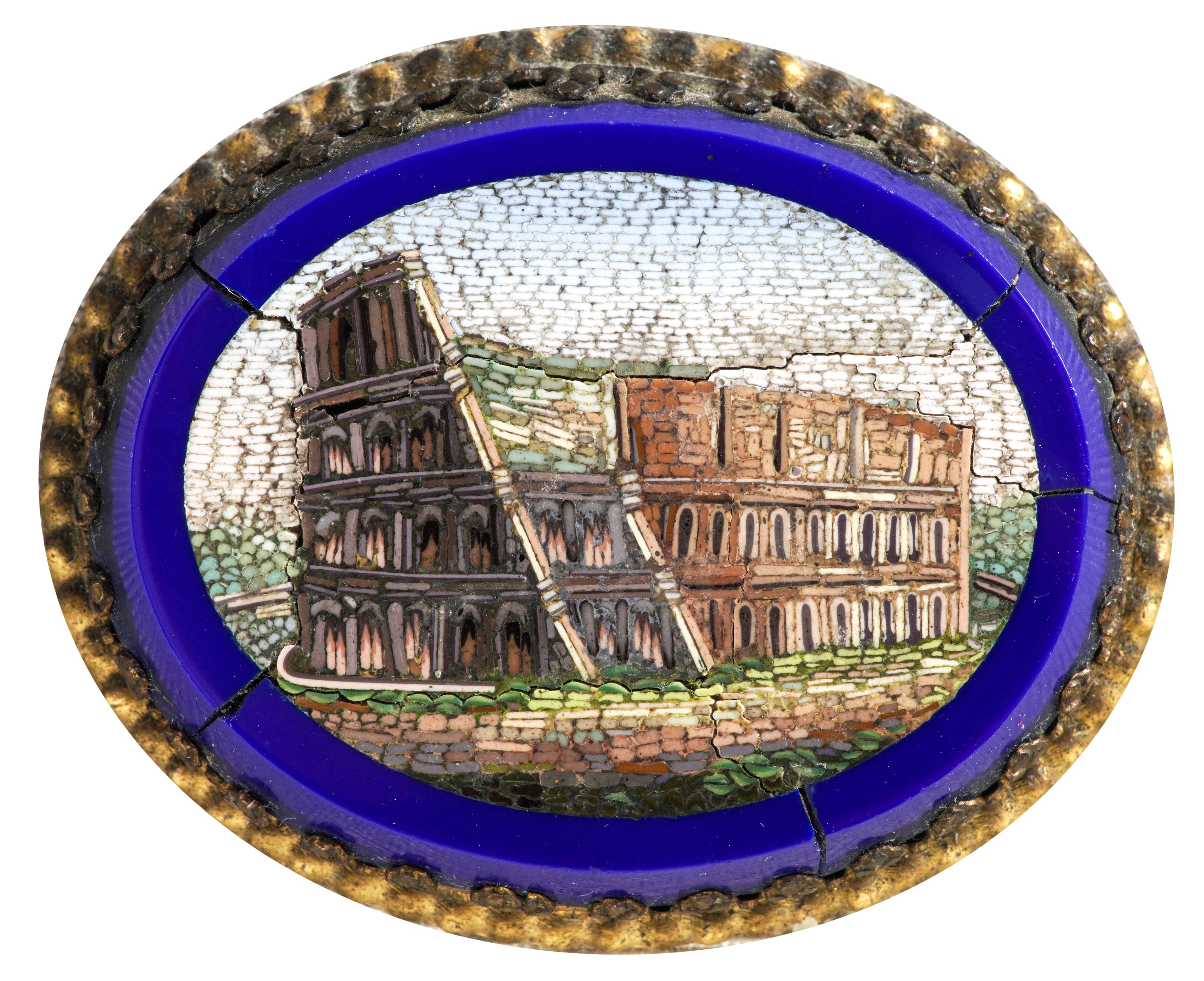 Quattro micromosaici raffiguranti rovine romane. XIX-XX secolo
