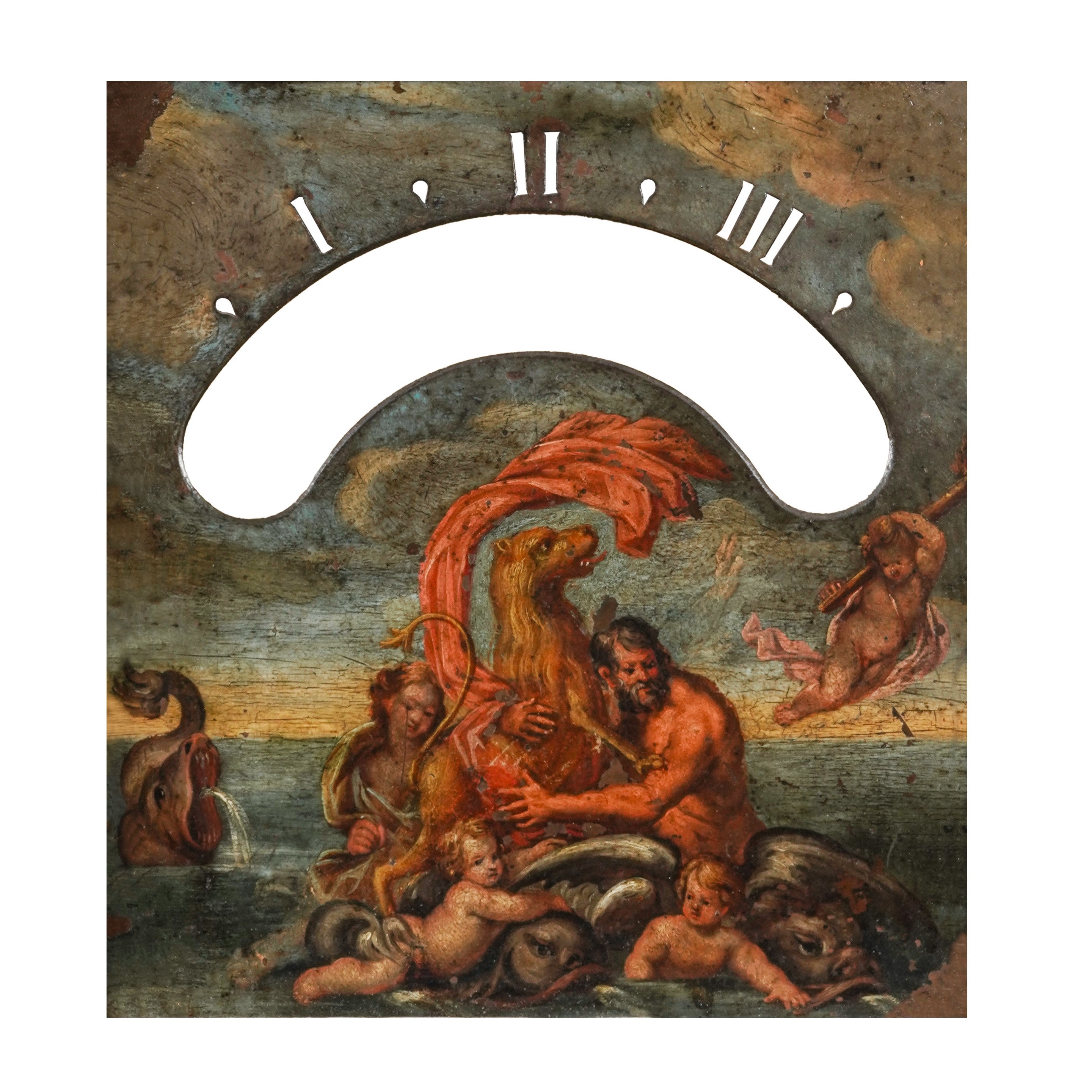 Scuola emiliana del XVII secolo, quadrante di orologio Soggetto mitologico