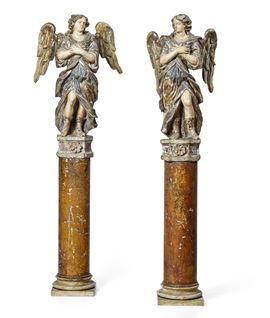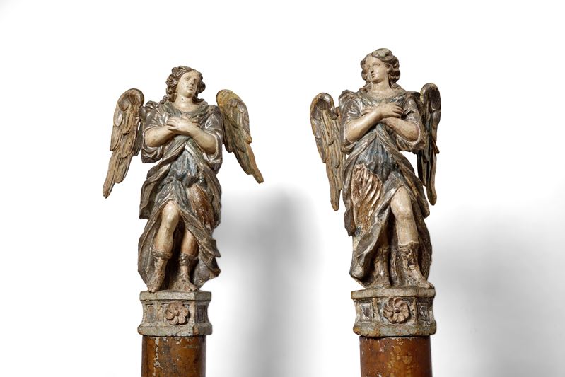Two wooden angels, Italy, 1600s