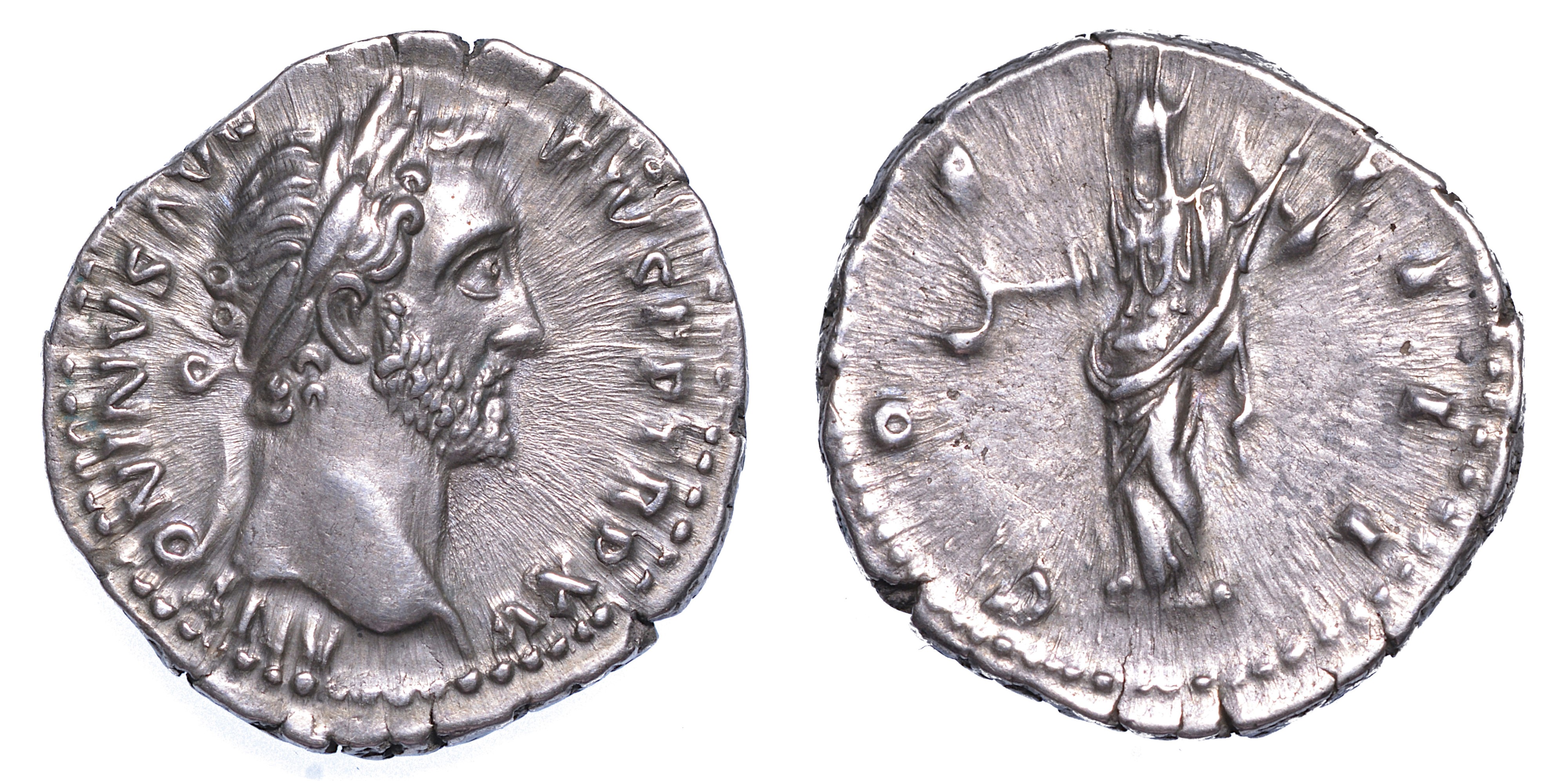 Testa laureata a d. R/ Vesta stante con simpulum e palladio. Coh. 196. RIC 203. g. 3,56. Diam. mm. 18,91. Arg. BB