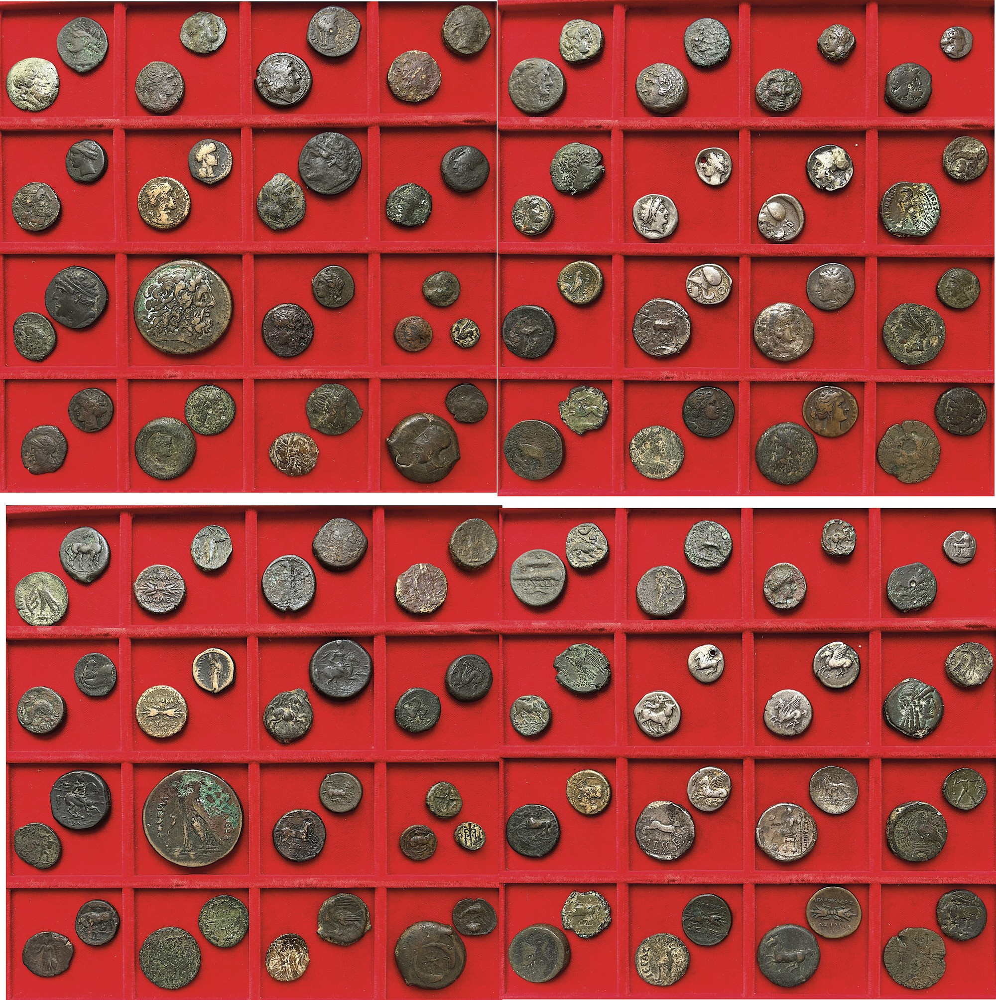 Monetazione mista della Grecia continentale, Macedonia, Magna Grecia e Sicilia. Si segnalano esemplari coniati nelle zecche di Corinto, Mileto, Cales, Napoli, Reggio, Agrigento, Messina e Siracusa. Presenti anche alcuni esemplari dei Macedoni, Tolemei e della Zeugitania. Esemplari in argento e rame. Conservazioni varie. Interessante lotto da visionare.