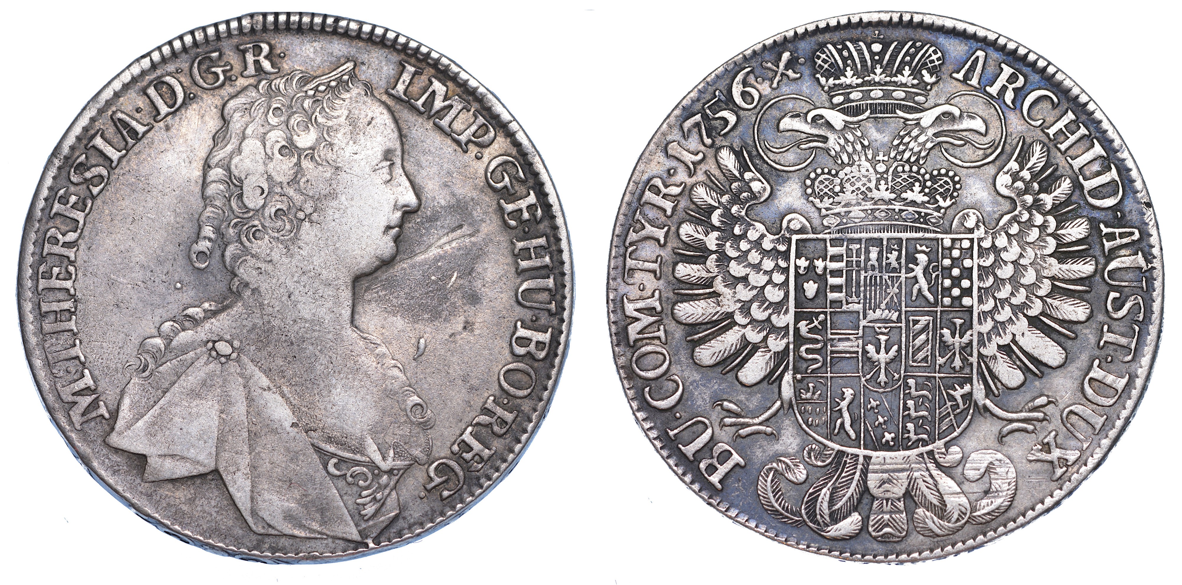 AUSTRIA. MARIA THERESIA, 1740-1780. Thaler 1756. Hall.