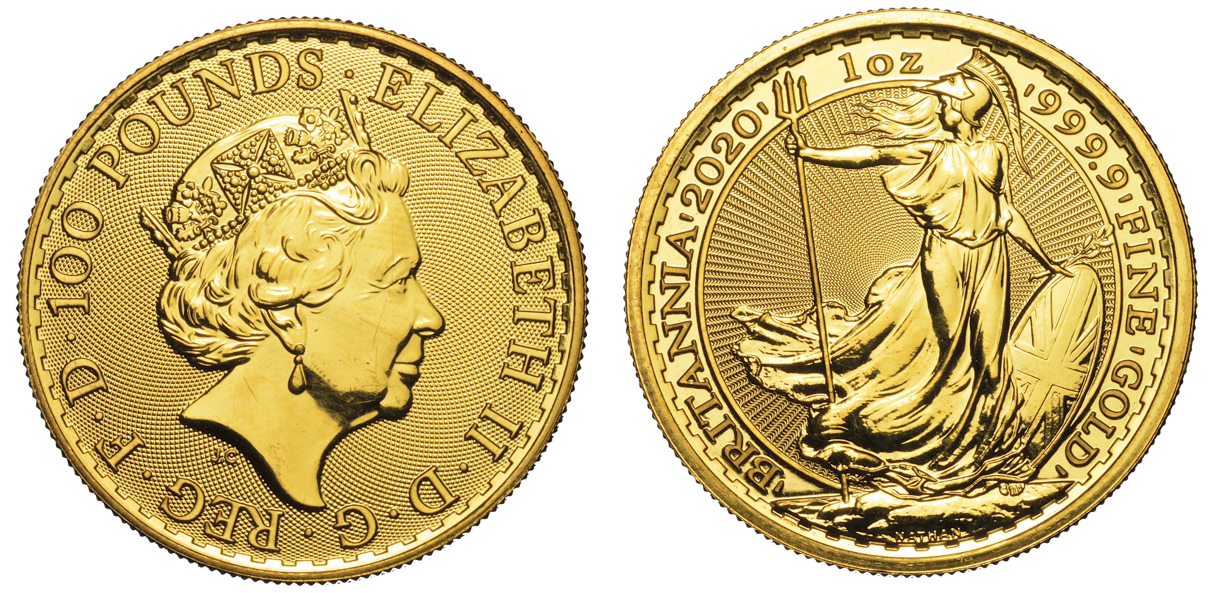 Testa coronata di Elisabetta II a d. R/ La Britannia con tridente e scudo. g. 31,19. Diam. mm. 32,52. Oro (titolo 999,9). FDC