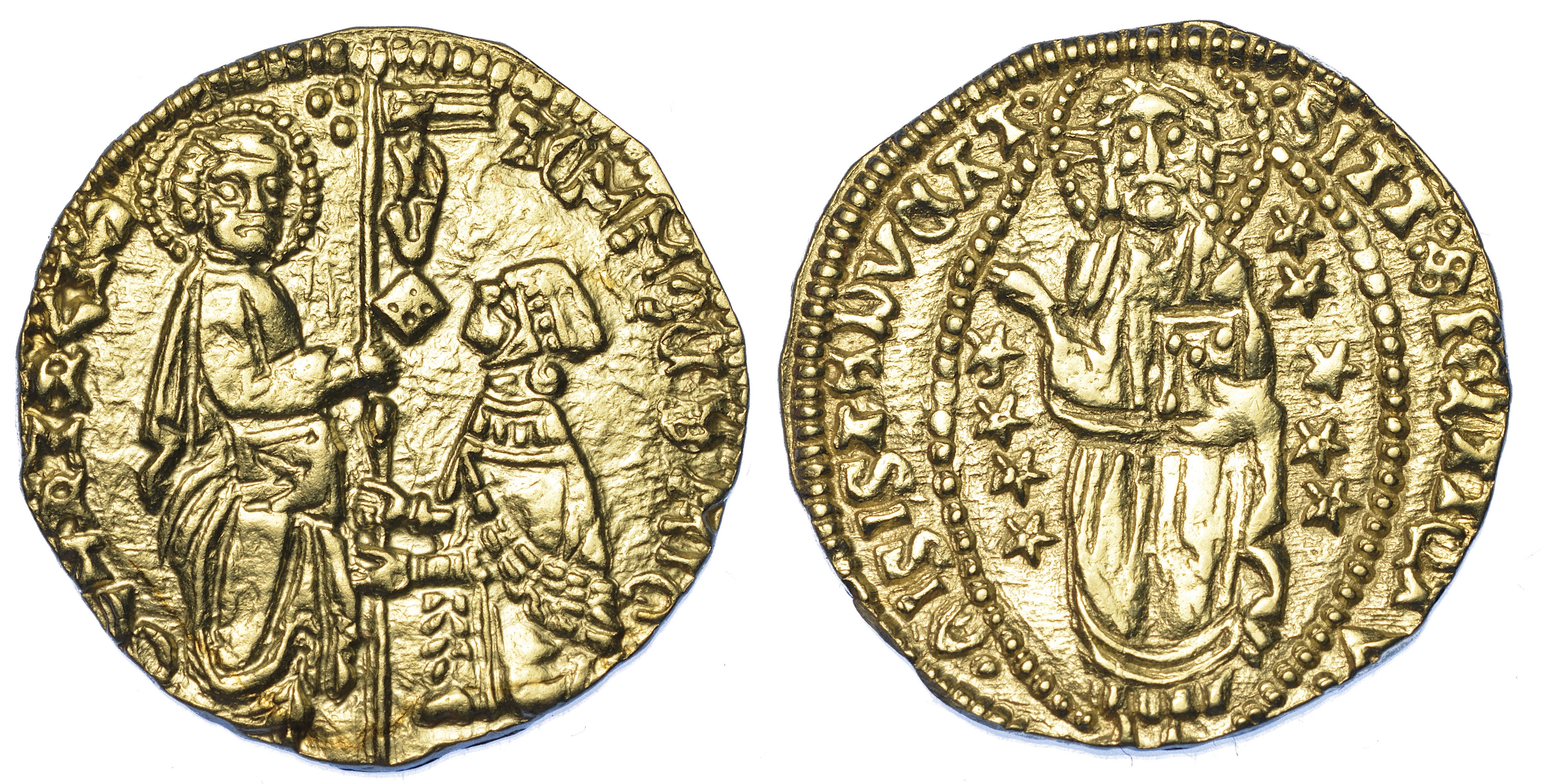 CHIOS. DOMINAZIONE GENOVESE (LA MAONA). DOGI ANONIMI, 1347-1415. Imitazione orientale del ducato veneziano di Tommaso Mocenigo, [..]