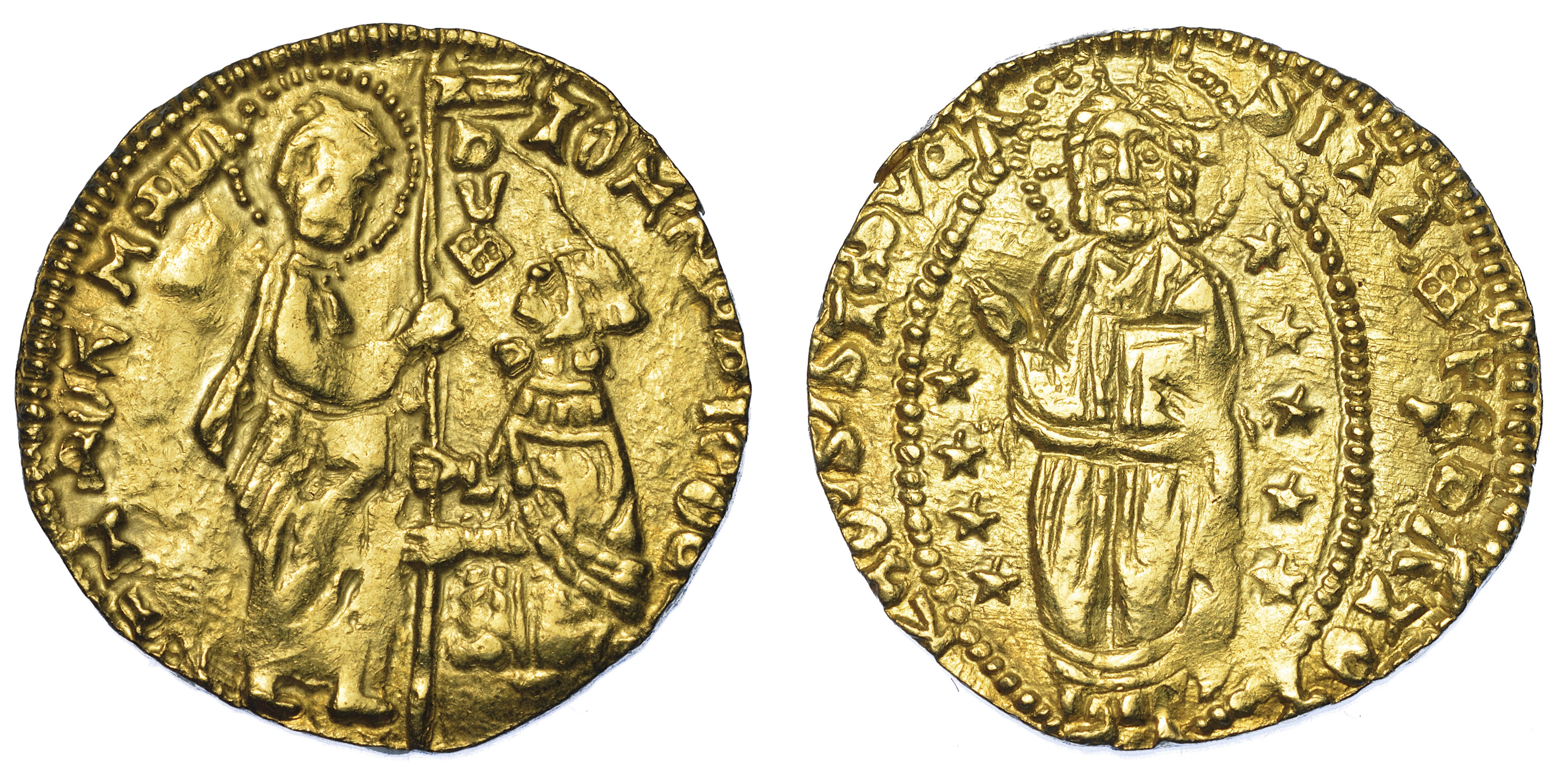 CHIOS. DOMINAZIONE GENOVESE (LA MAONA). DOGI ANONIMI, 1347-1415. Imitazione orientale del ducato veneziano di Tommaso Mocenigo, [..]