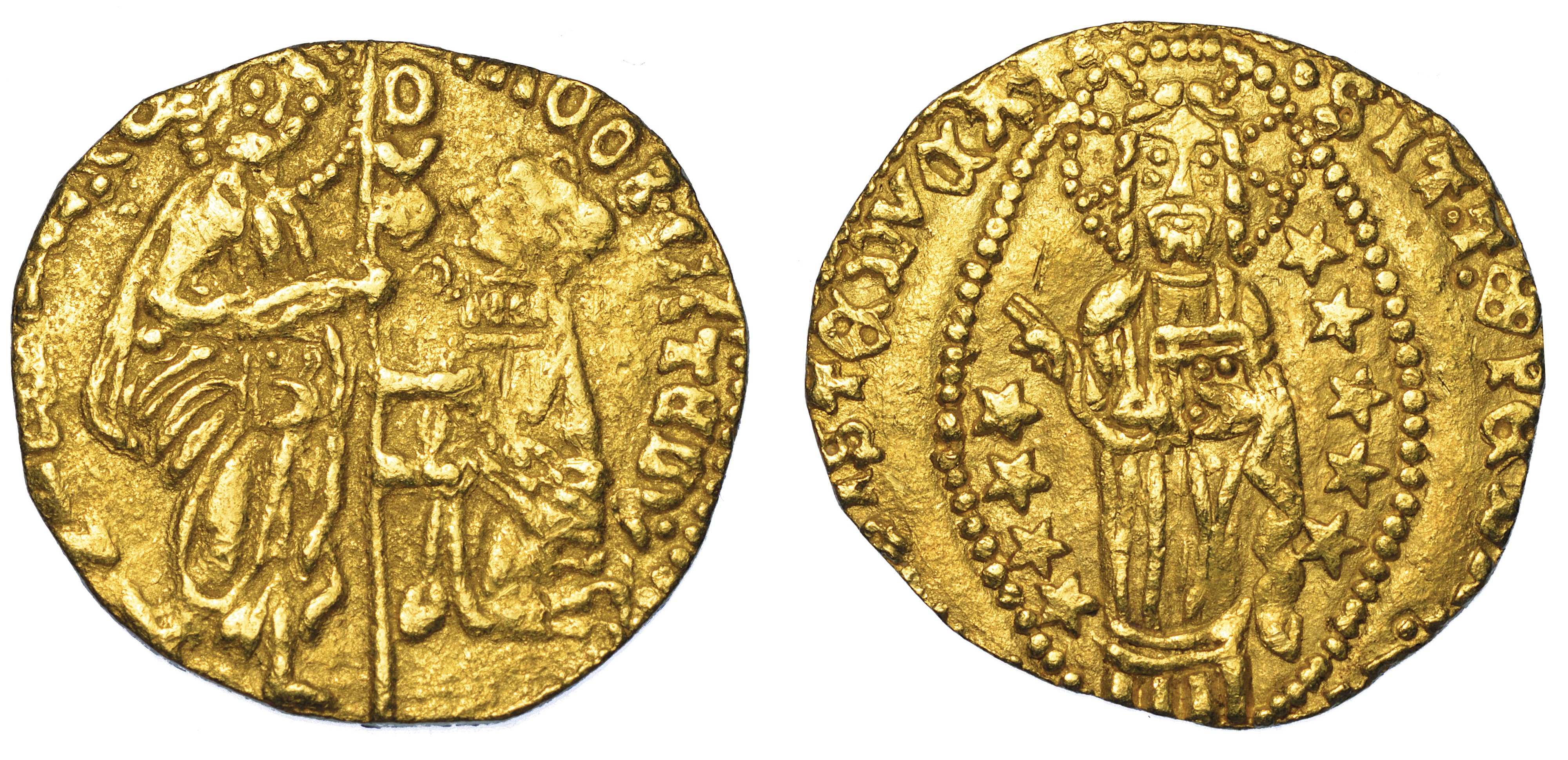 CHIOS. DOMINAZIONE GENOVESE (LA MAONA). DOGI ANONIMI, 1347-1415. Imitazione orientale del ducato veneziano di Michele Steno, 1400-1413.