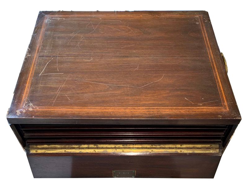 Ciascuno contenente quattro cassetti portamonete di mm. 45 di diametro con sedi per 140 monete. Misure cm. 45x36x11.