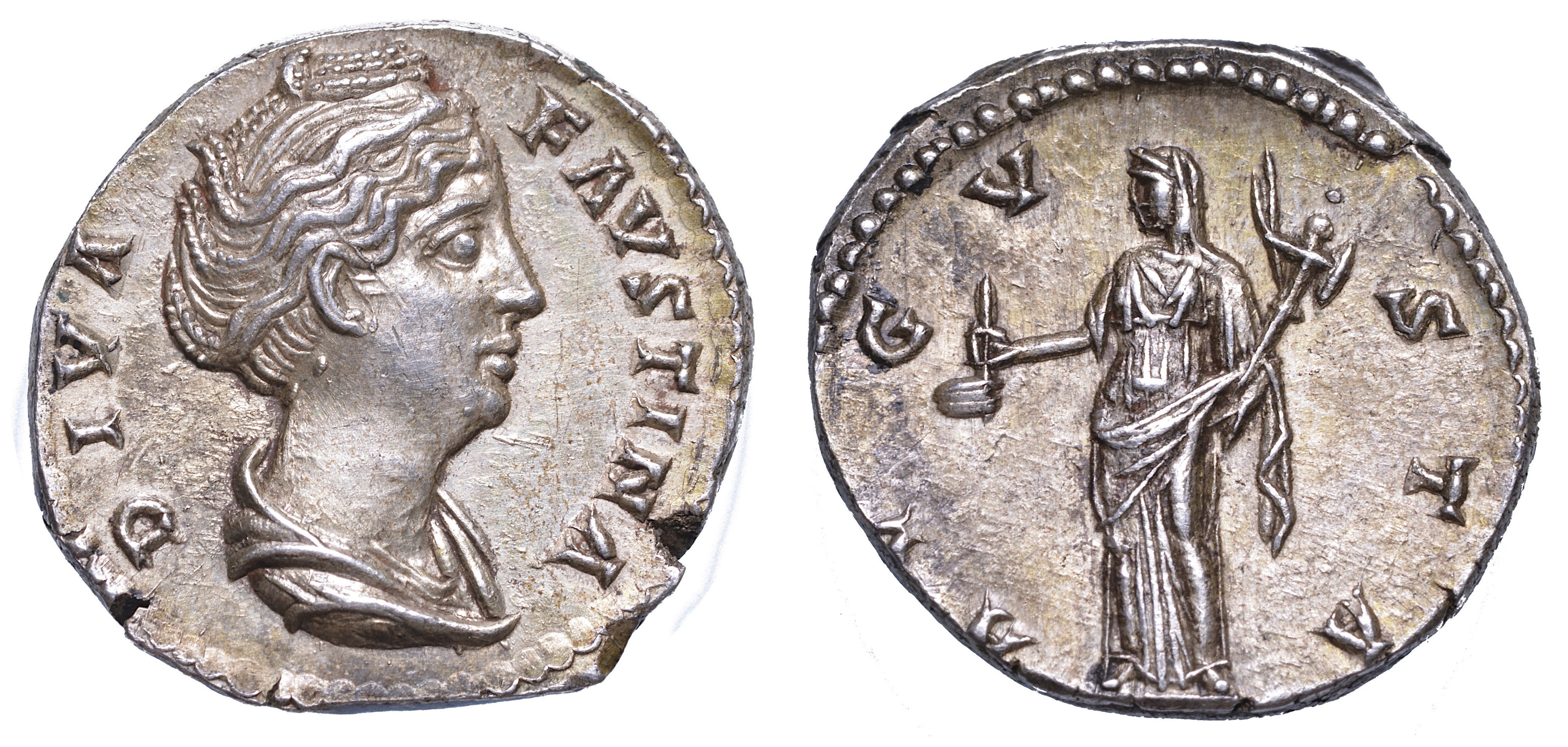 FAUSTINA I (moglie di Antonino Pio), + 140/141. Denario. Consacrazione.
