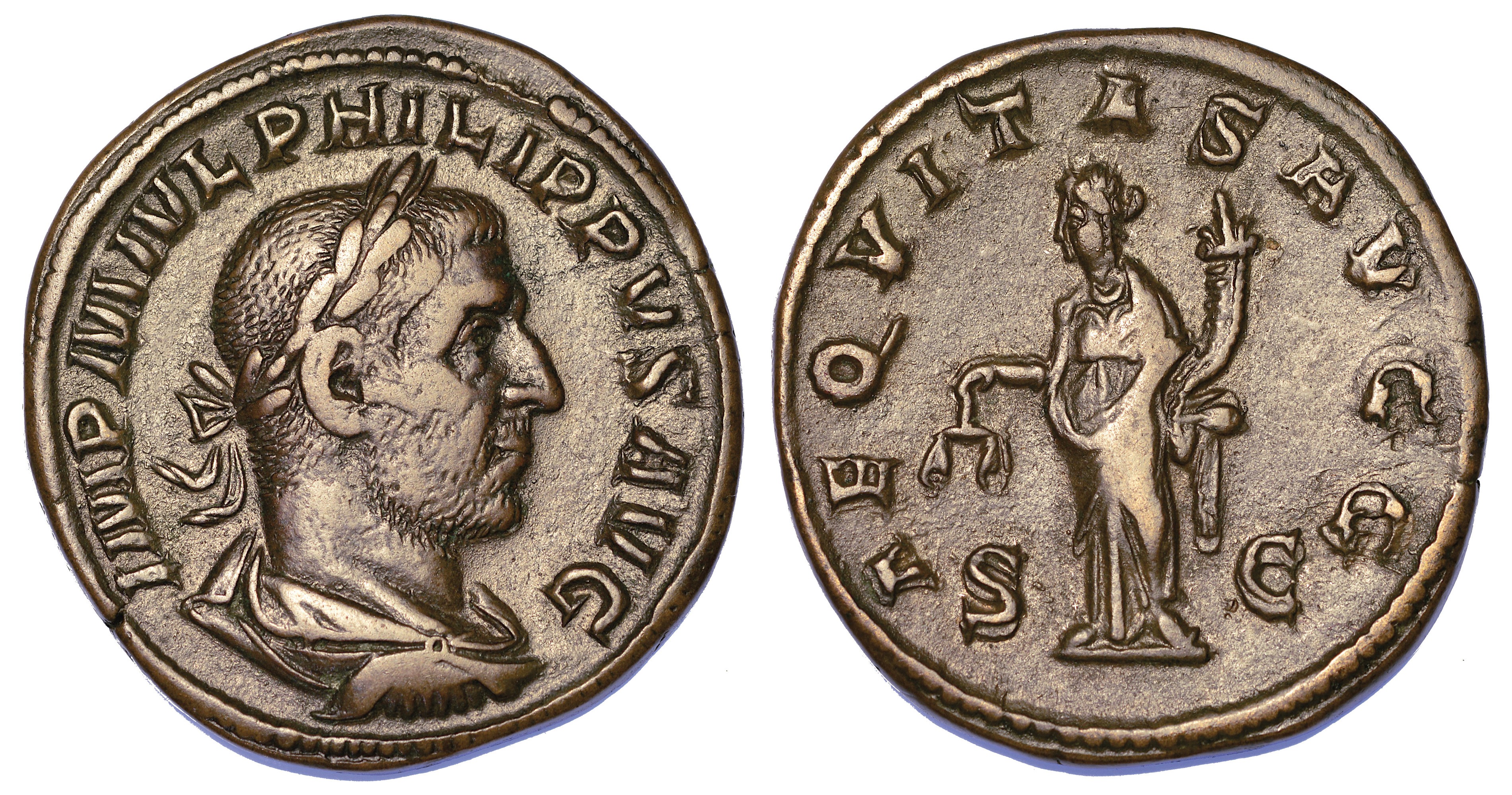 Busto laureato, drappeggiato e corazzato a d. R/ Aequitas stante verso s. con bilancia e cornucopia. Coh. 10. RIC 166a. g. 18,57. Diam. mm. 29,94. Bronzo. Patina marrone. BB