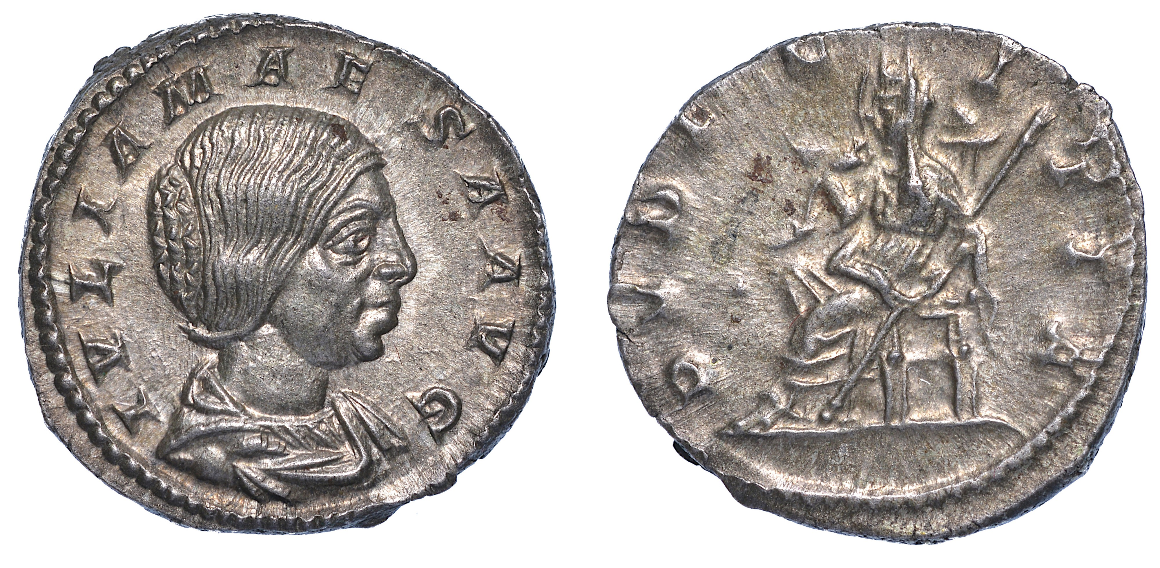 GIULIA MESA (nonna di Eliogabalo e di Alessandro Severo), + 226. Denario.
