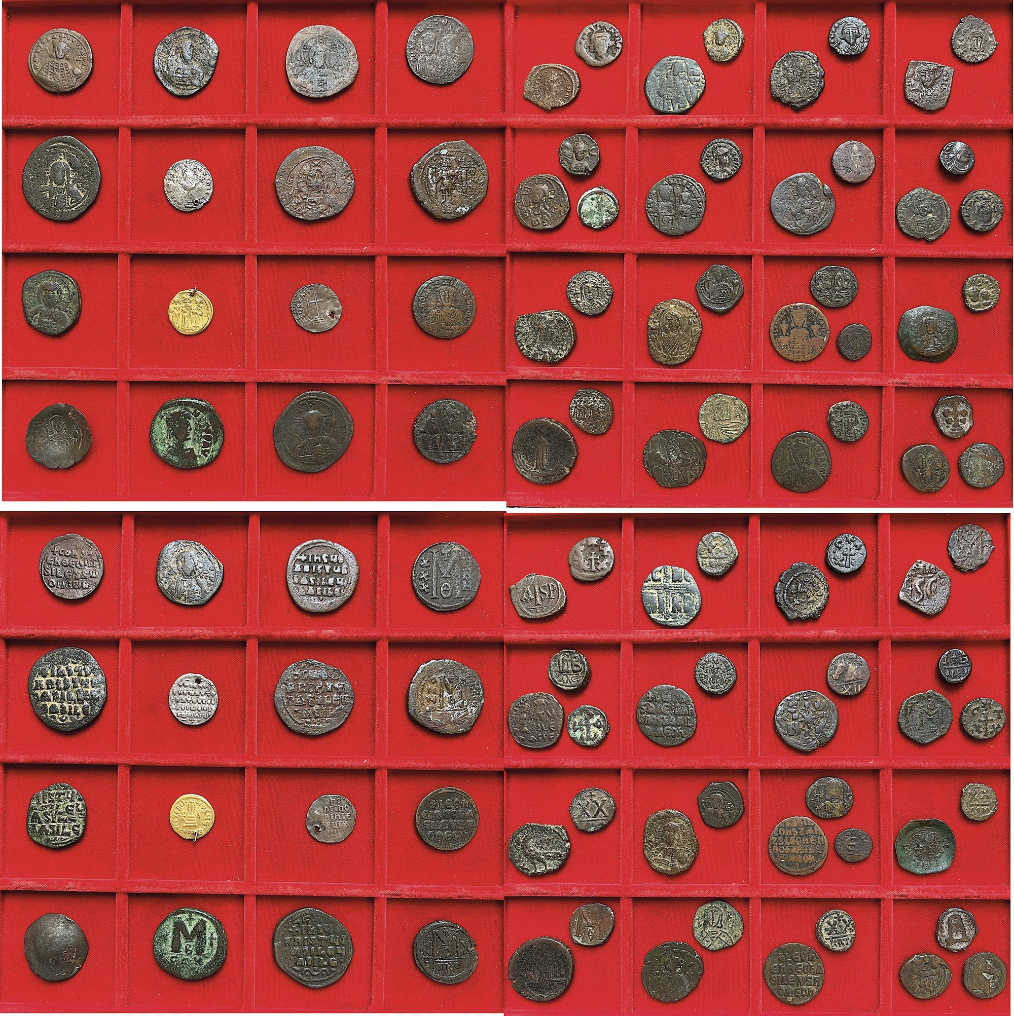 Monetazione bizantina mista. Si segnalano: ERACLIO, 610-641. Solido (con anello) - COSTANTINO VI E IRENE, 780-797. Miliaresion (foro) - NICEFORO II FOCA, 963-969. Miliaresion (foro). Esemplari in oro, argento e rame. Conservazioni varie.