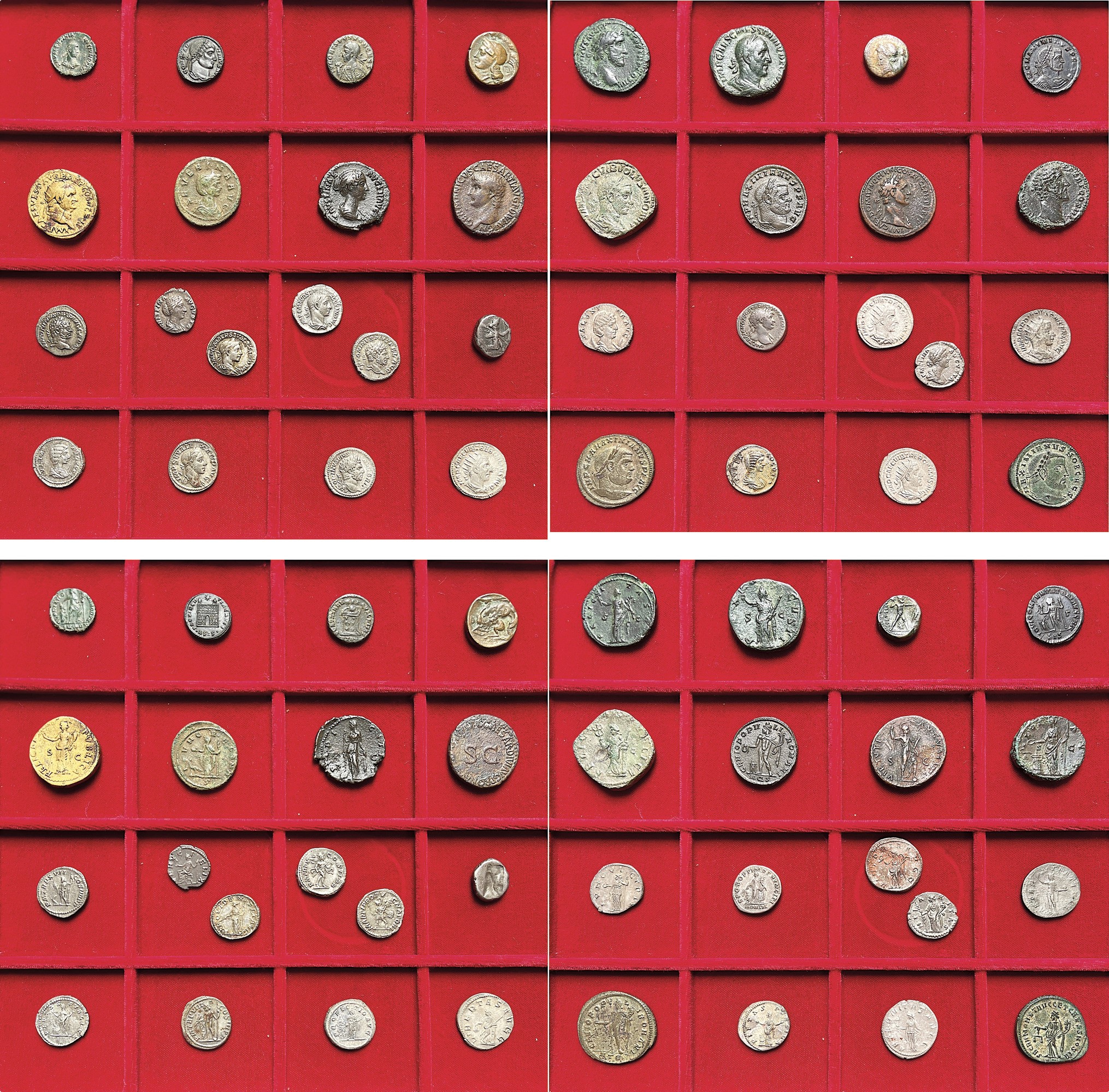 Monetazione mista prevalentemente dell’impero romano dal I al IV secolo. Si segnalano coniazioni di Vespasiano, Domiziano, Traiano, Antonino Pio. Si aggiunge un esemplare della Magna Grecia e uno della Persia. Esemplari in argento e rame. Conservazione varie, interessante lotto da visionare.