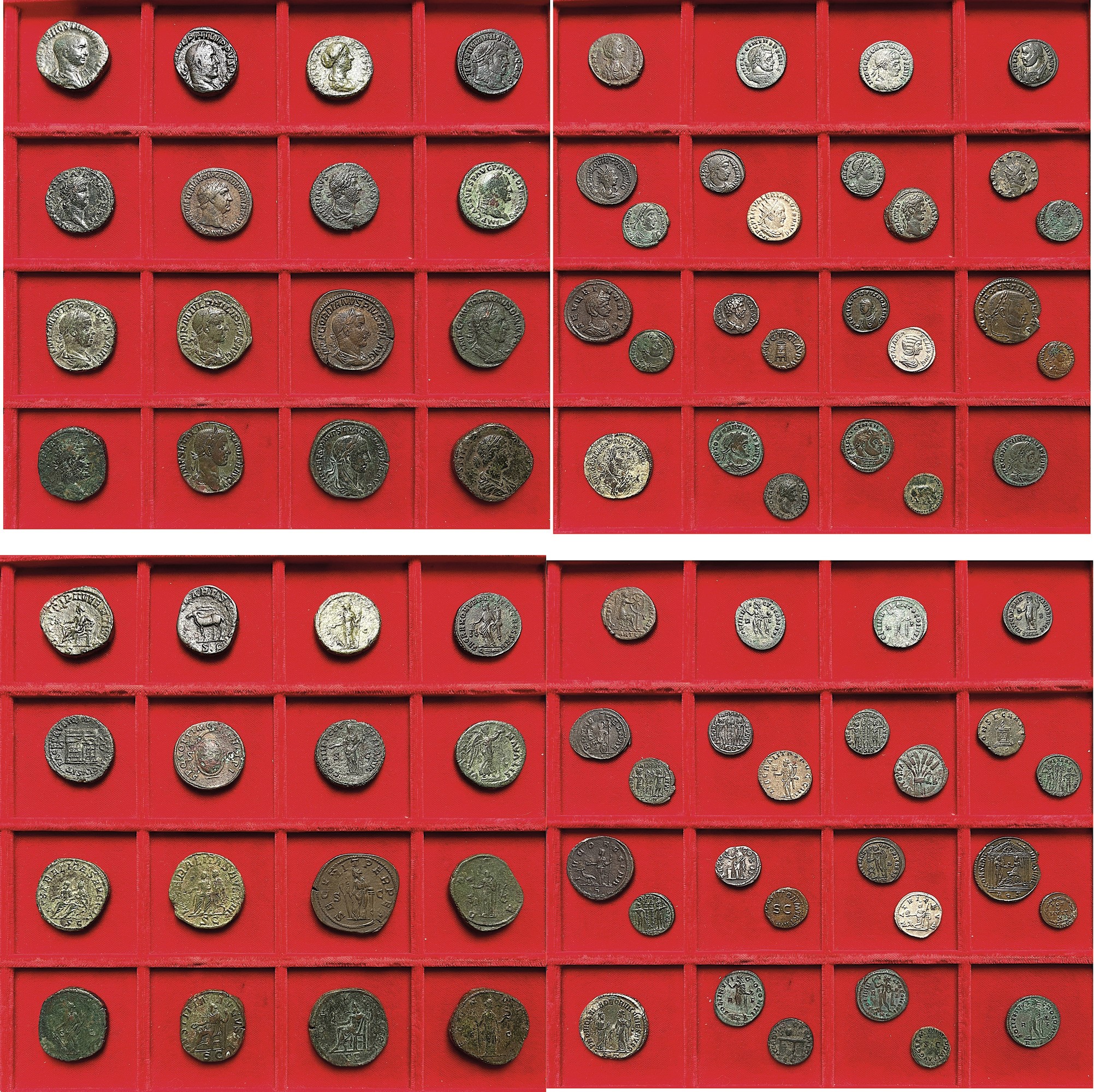 Monetazione mista dell’impero romano dal I al IV secolo. Si segnalano coniazioni di Claudio, Nerone, Vespasiano, Traiano, Adriano, Elio Cesare e Settimio Severo. Esemplari in argento e rame. Conservazione varie, interessante lotto da visionare.