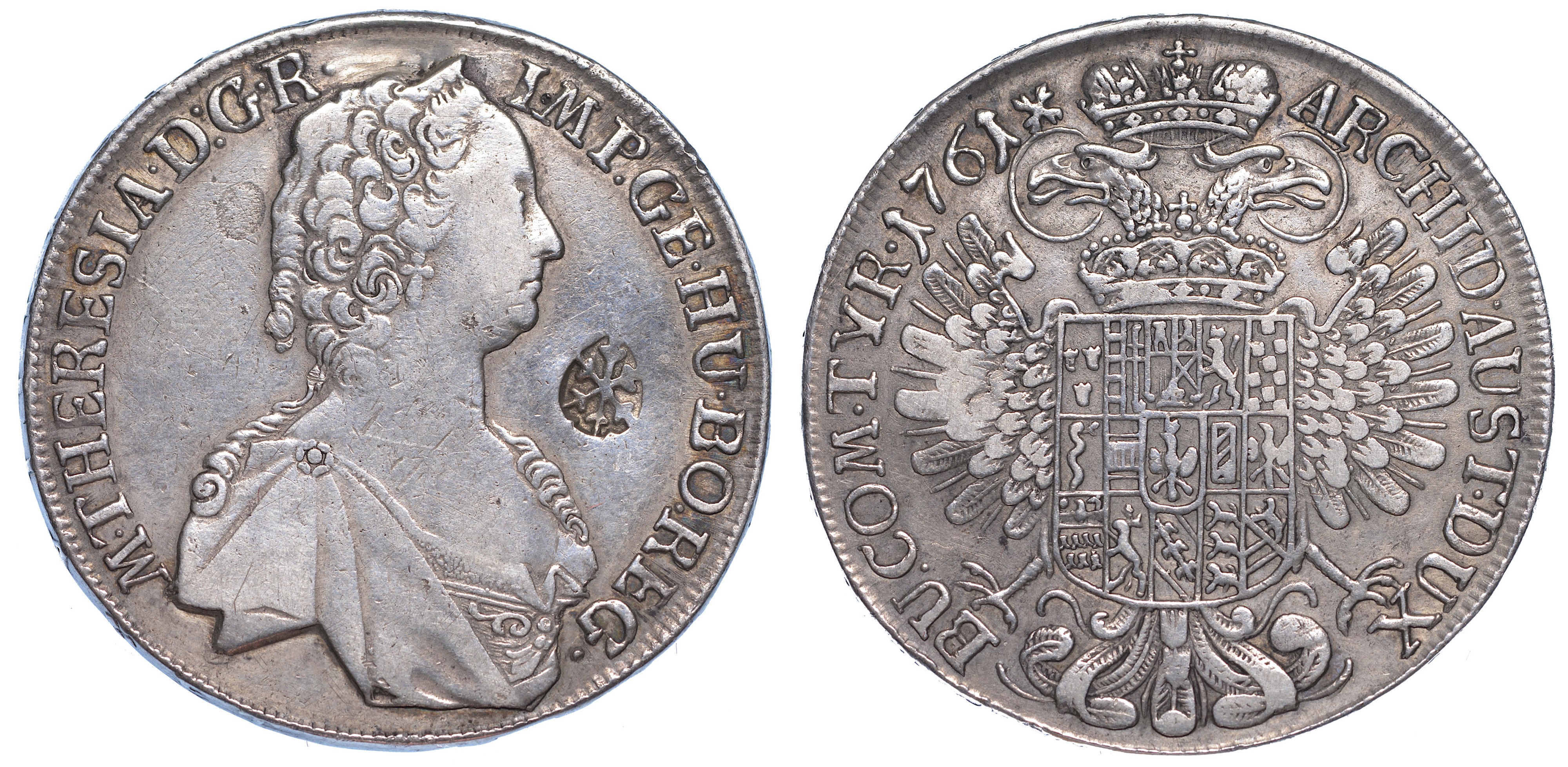 Busto diademato a d.; davanti, contromarca R/ Aquila bicipite coronata. Dav. 1121. g. 27,55. Diam. mm. 39,80. Arg. Lieve traccia di appiccagnolo. MB/q.BB