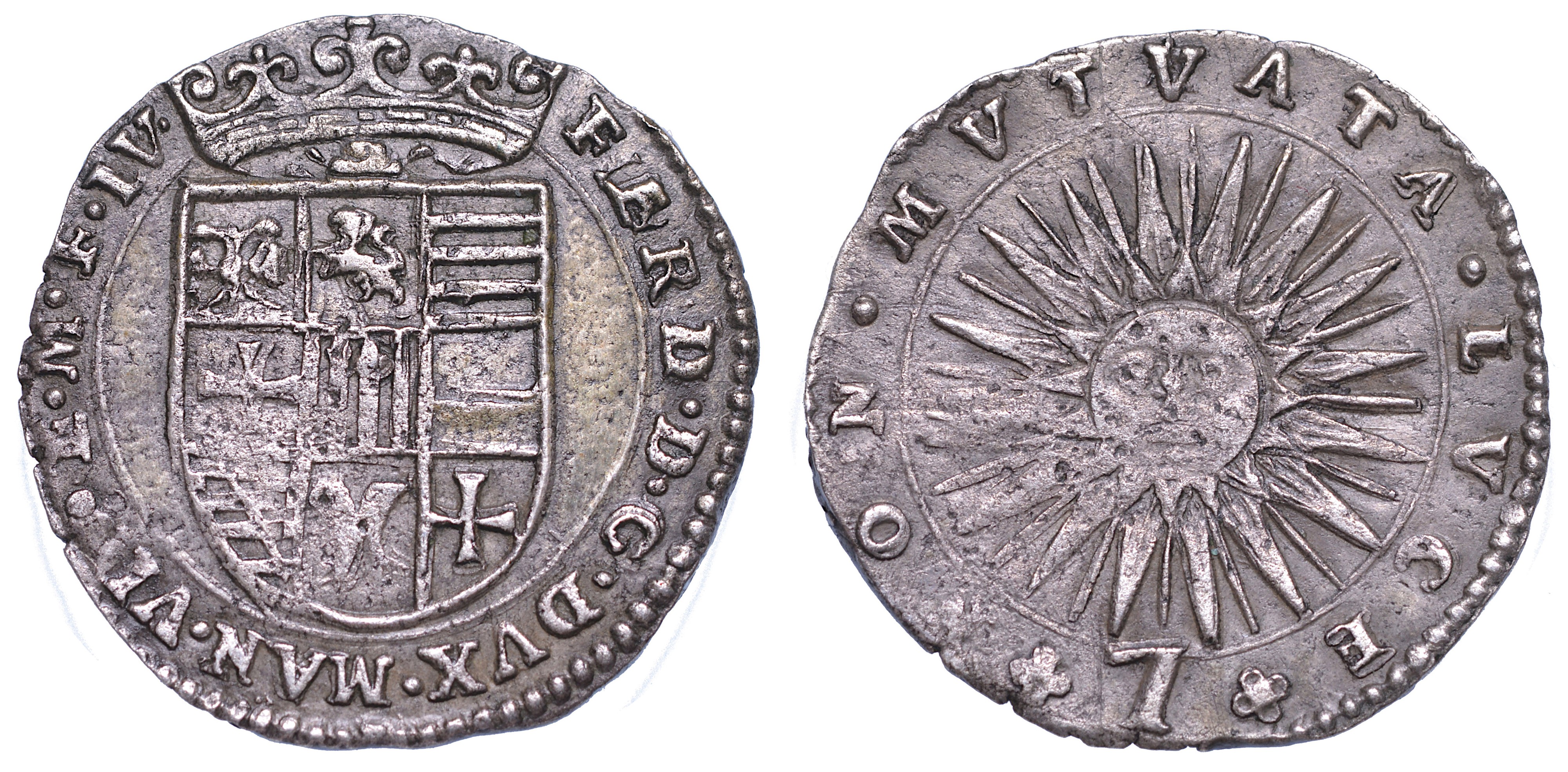 Stemma coronato. R/ Sole raggiante. CNI 33. MIR 613. g. 1,74. Diam. mm. 19,33. Arg. BB