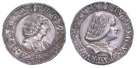 Busto corazzato di Gian Galeazzo Maria Sforza a d. R/ Busto corazzato di Ludovico Maria Sforza a d. Crippa 3. CNI 16/31. RMM 8. MIR 221. Raro. g. 9,30 Diam. mm. 27,69. Arg. Lieve corrosione sul bordo. q.SPL