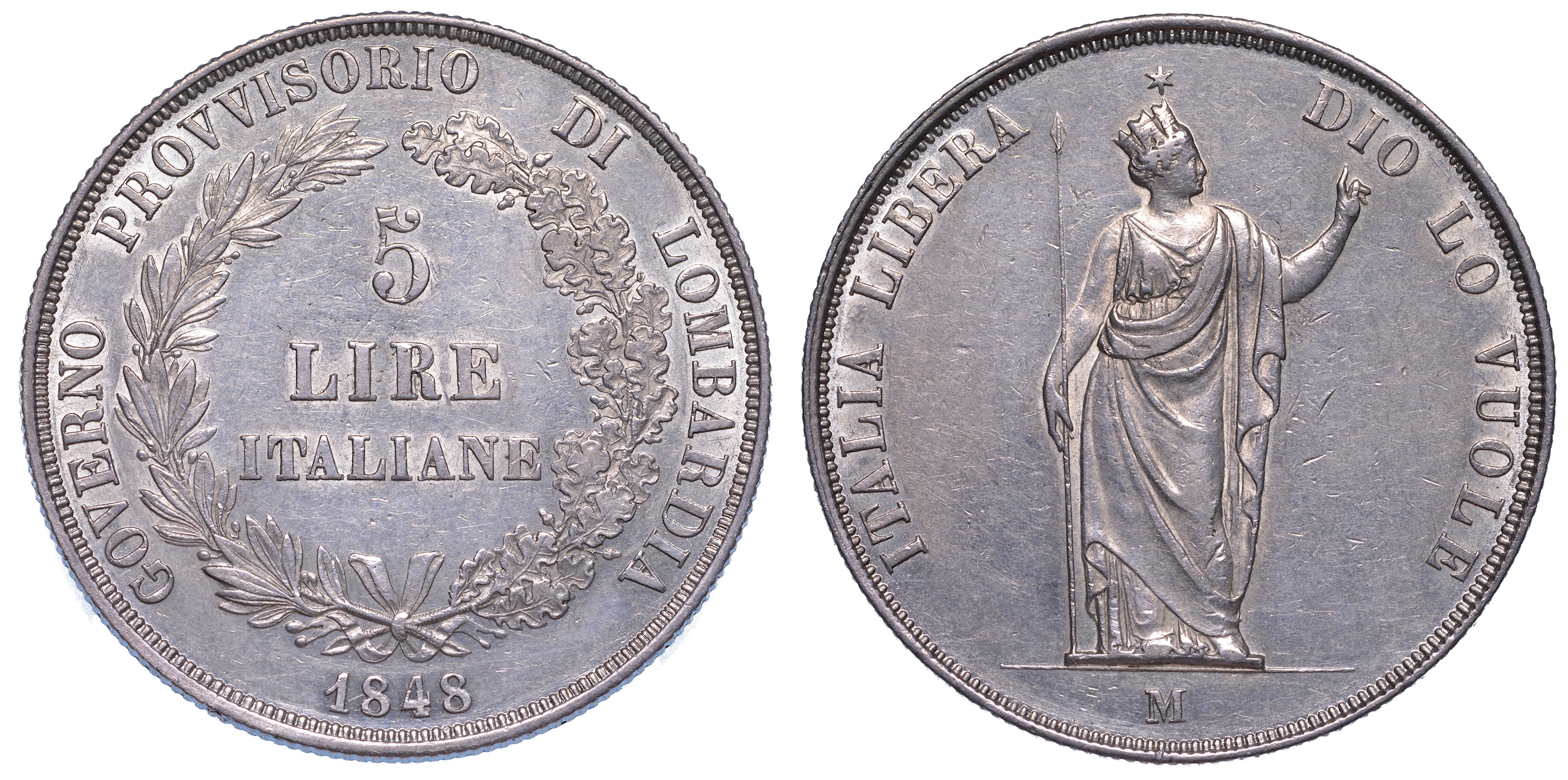 MILANO. GOVERNO PROVVISORIO DI LOMBARDIA, 1848. 5 Lire 1848.