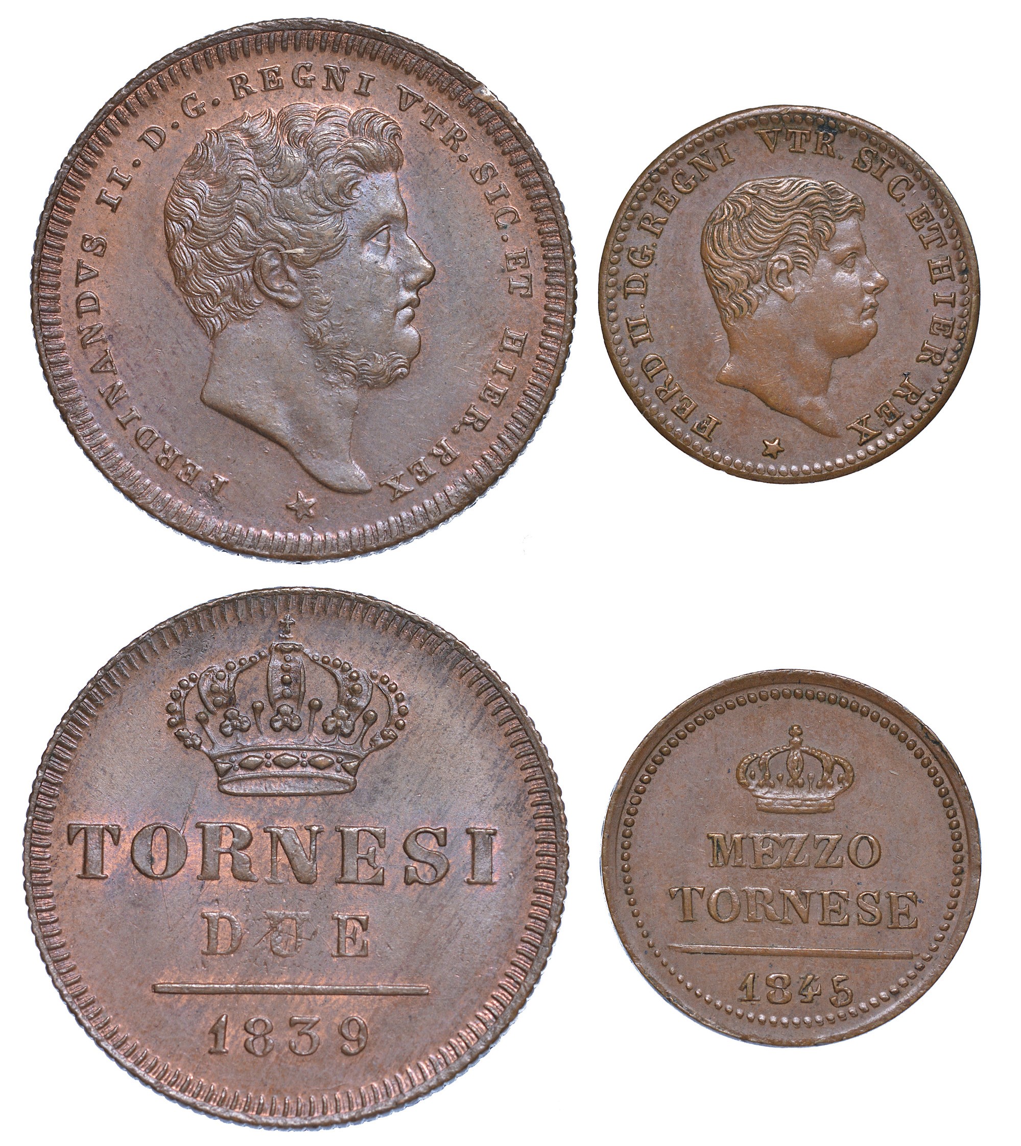 2 Tornesi 1839. Gig. 249. g. 6,14. Rame. SPL/q.FDC - Mezzo tornese 1845. g. 1,66. Gig. 311. Rame. SPL/q.FDC