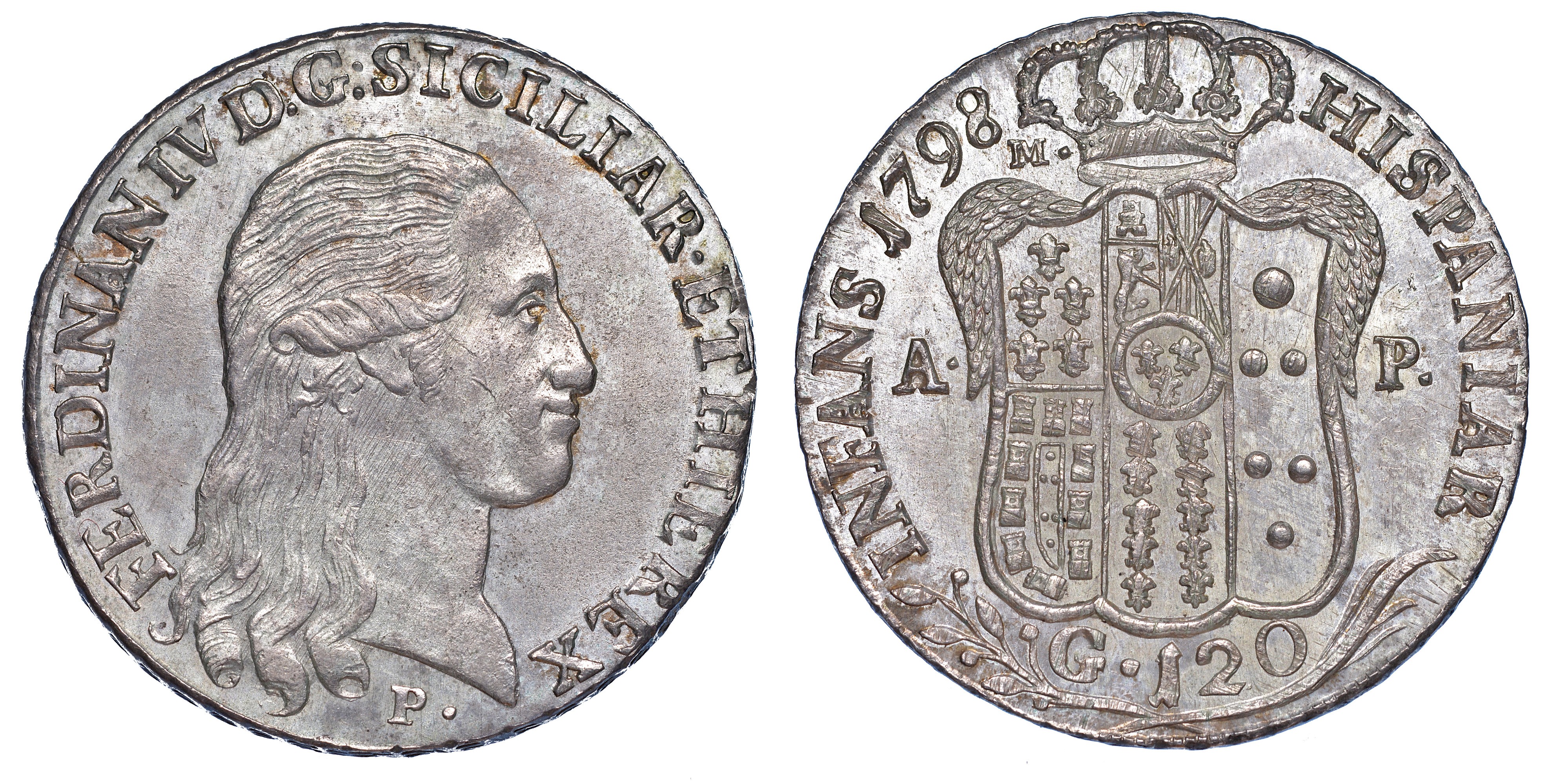 NAPOLI. FERDINANDO IV DI BORBONE, 1759-1816. Piastra da 120 Grana 1798.