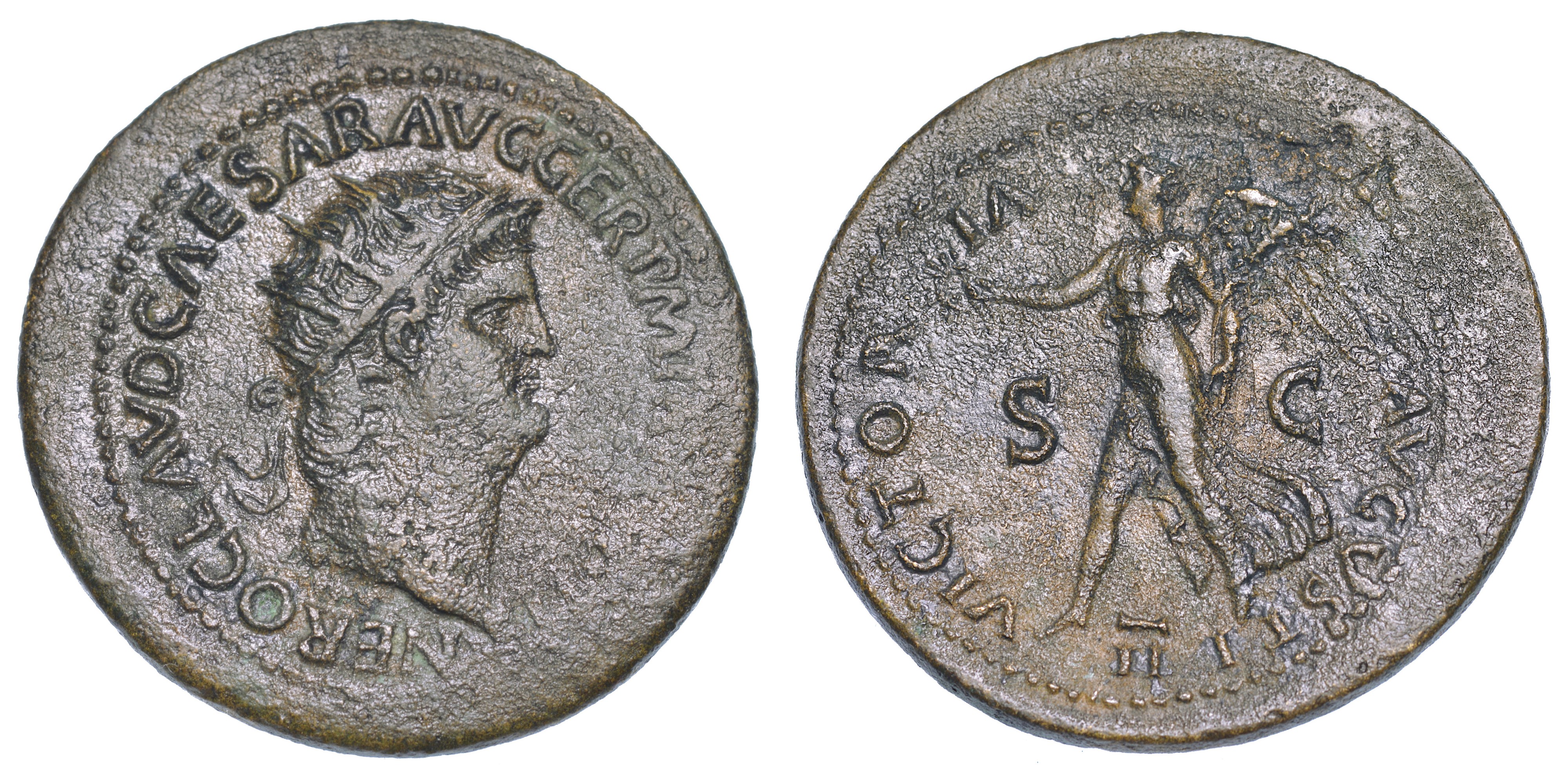 NERONE, 54-68. Dupondio, anno 64. Lugdunum.