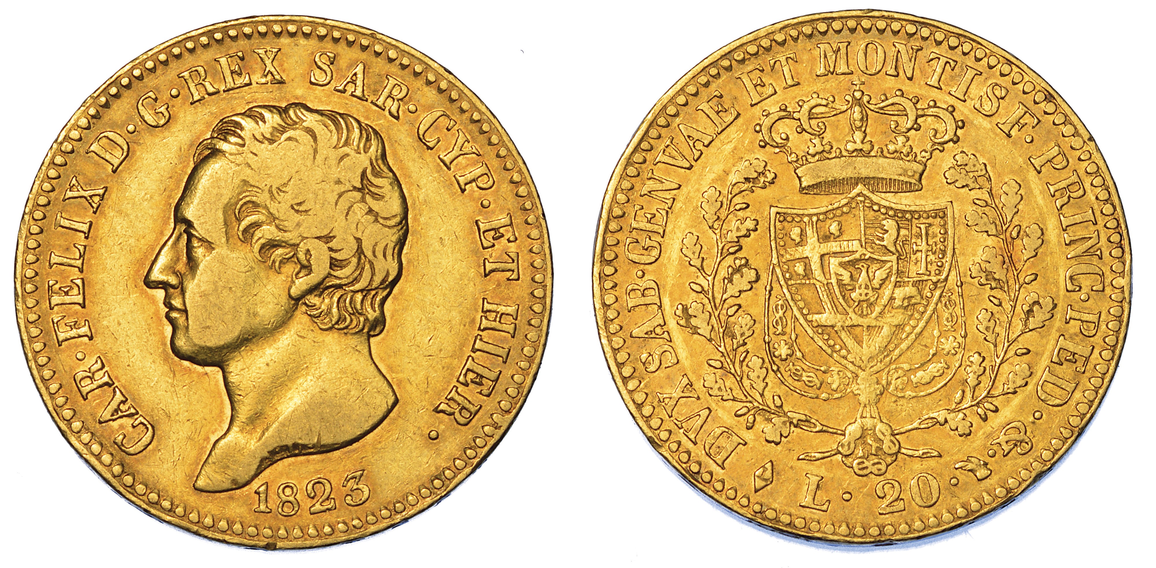 REGNO DI SARDEGNA. CARLO FELICE DI SAVOIA, 1821-1831. 20 Lire 1823. Torino.