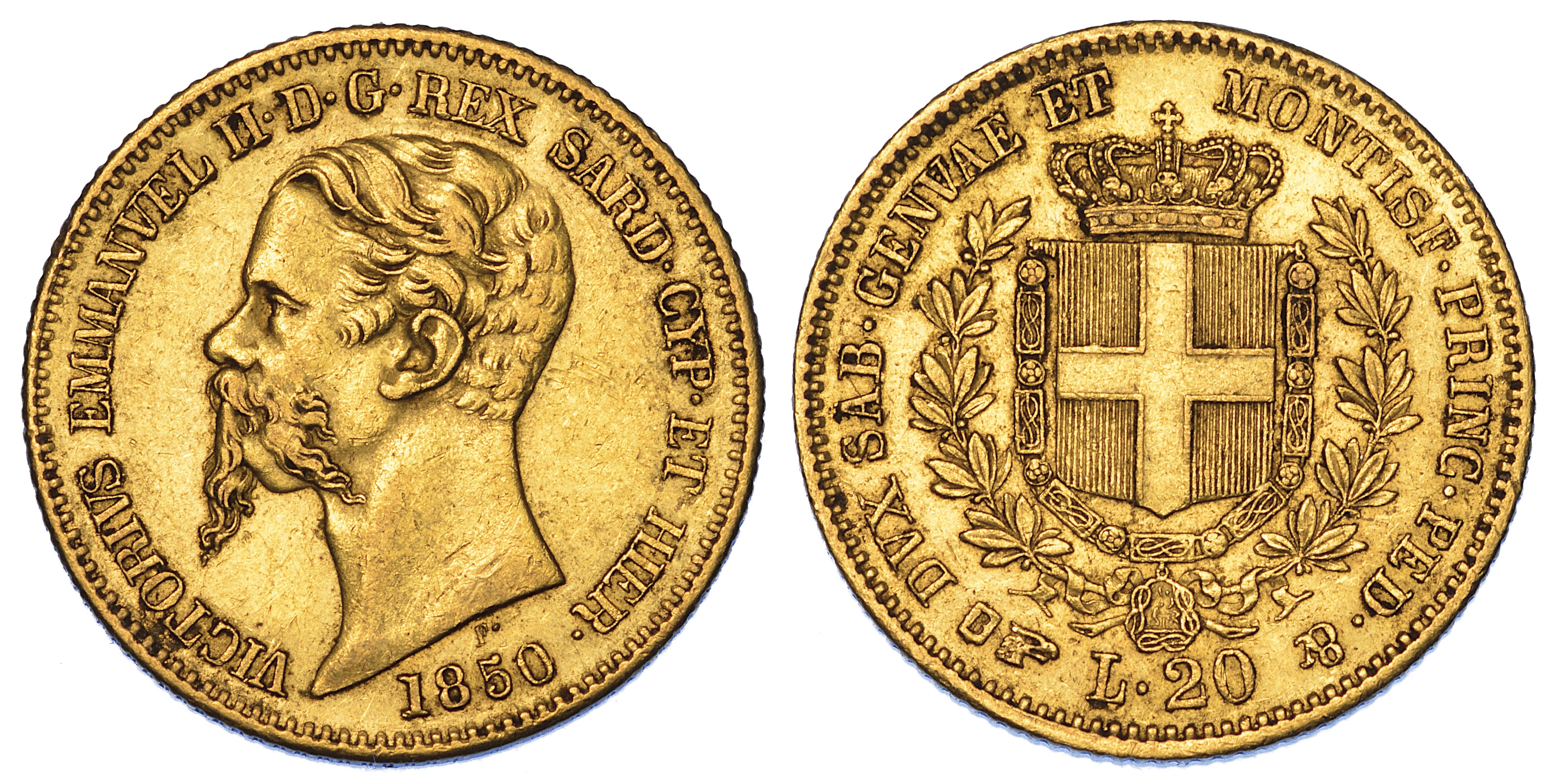 REGNO DI SARDEGNA. VITTORIO EMANUELE II DI SAVOIA, 1849-1861. 20 Lire 1850. Torino.