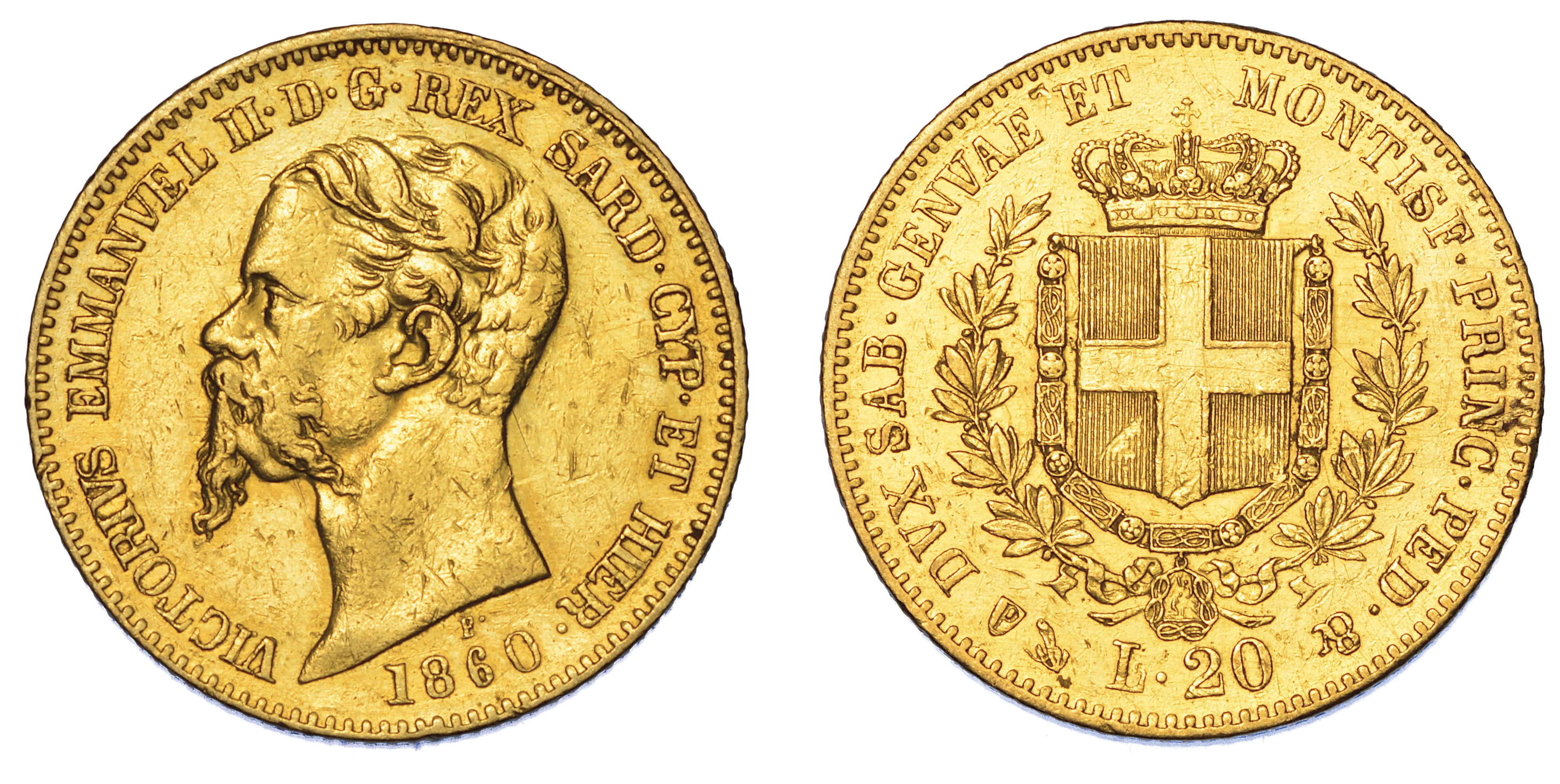 REGNO DI SARDEGNA. VITTORIO EMANUELE II DI SAVOIA, 1849-1861. 20 Lire 1860. Genova.