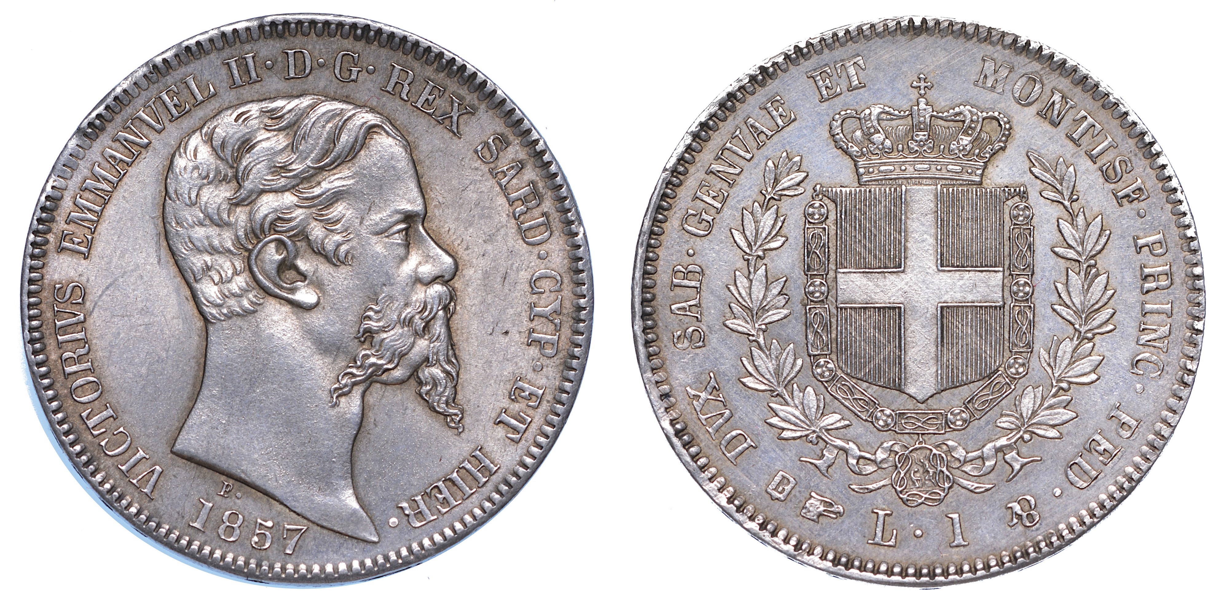 REGNO DI SARDEGNA. VITTORIO EMANUELE II DI SAVOIA, 1849-1861. Lira 1857. Torino.