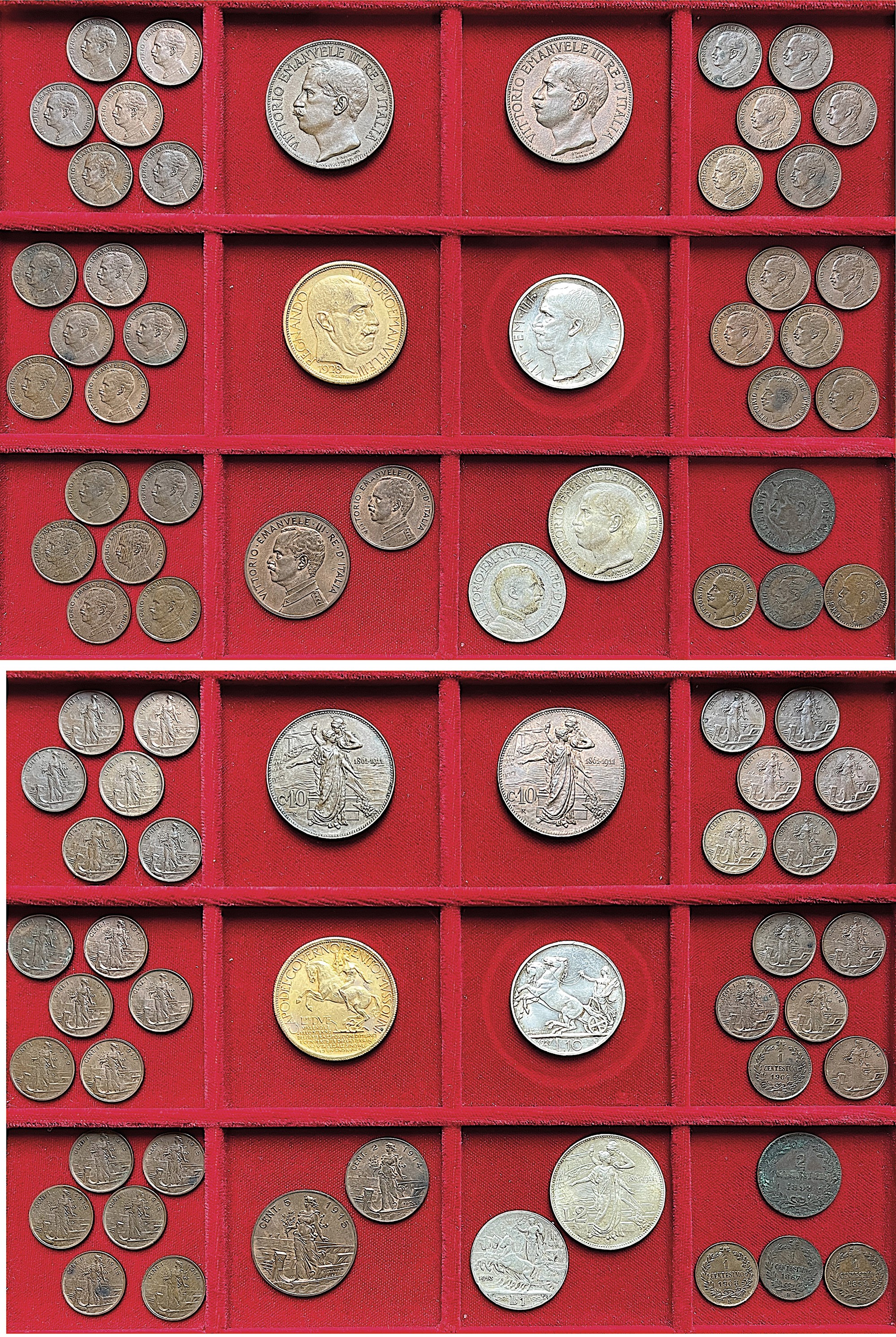 Monetazione mista coniata durante i regni di Vittorio Emanuele II, Umberto e, in prevalenza, Vittorio Emanuele III di Savoia. Si segnala: Buono da 2 Lire della Fiera esposizione di Milano 1928 (SPL). Argento e rame. Mediamente in conservazione molto alta.