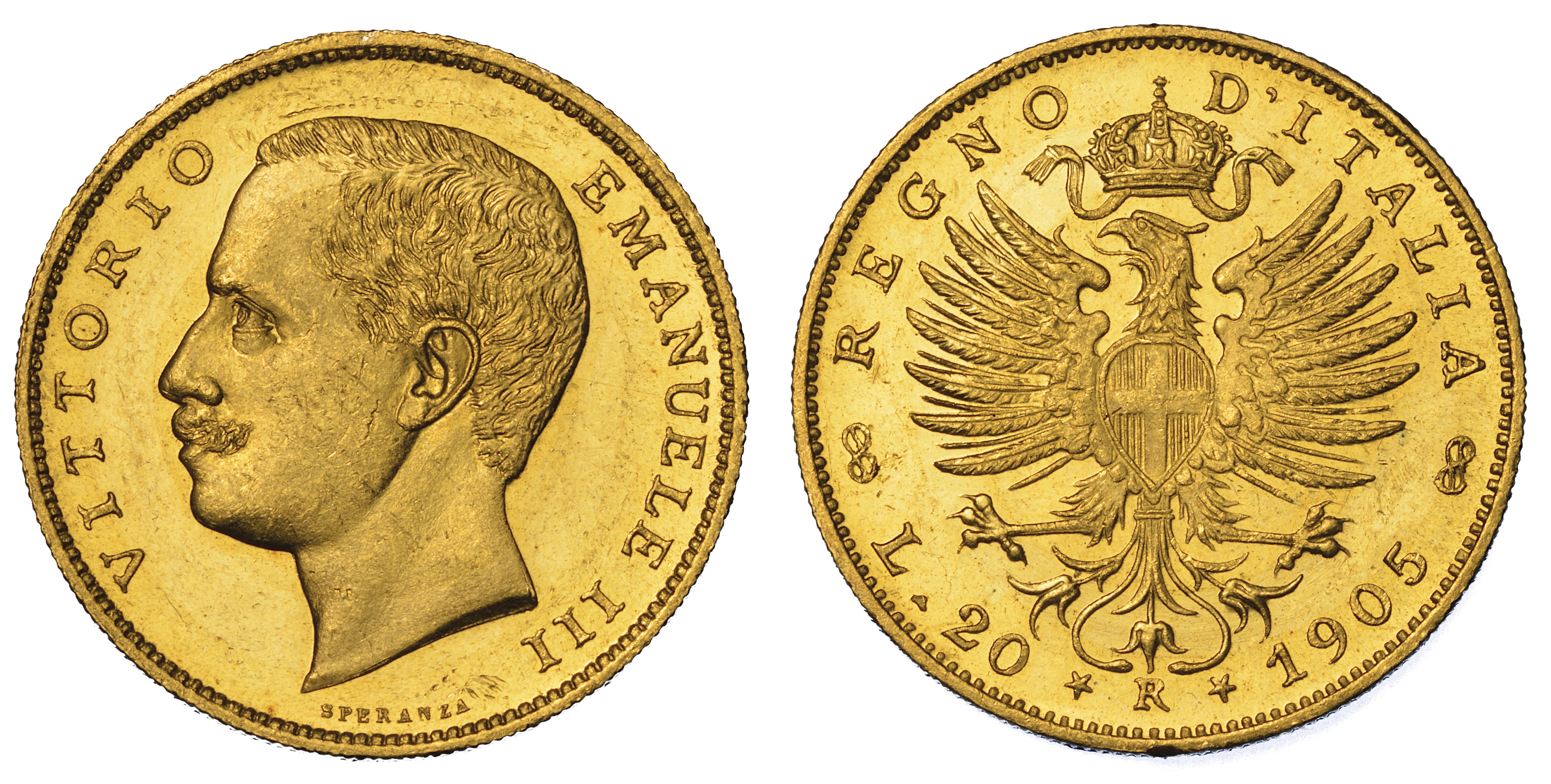 REGNO D’ITALIA. VITTORIO EMANUELE III DI SAVOIA, 1900-1946. 20 Lire 1905. Aquila Sabauda.