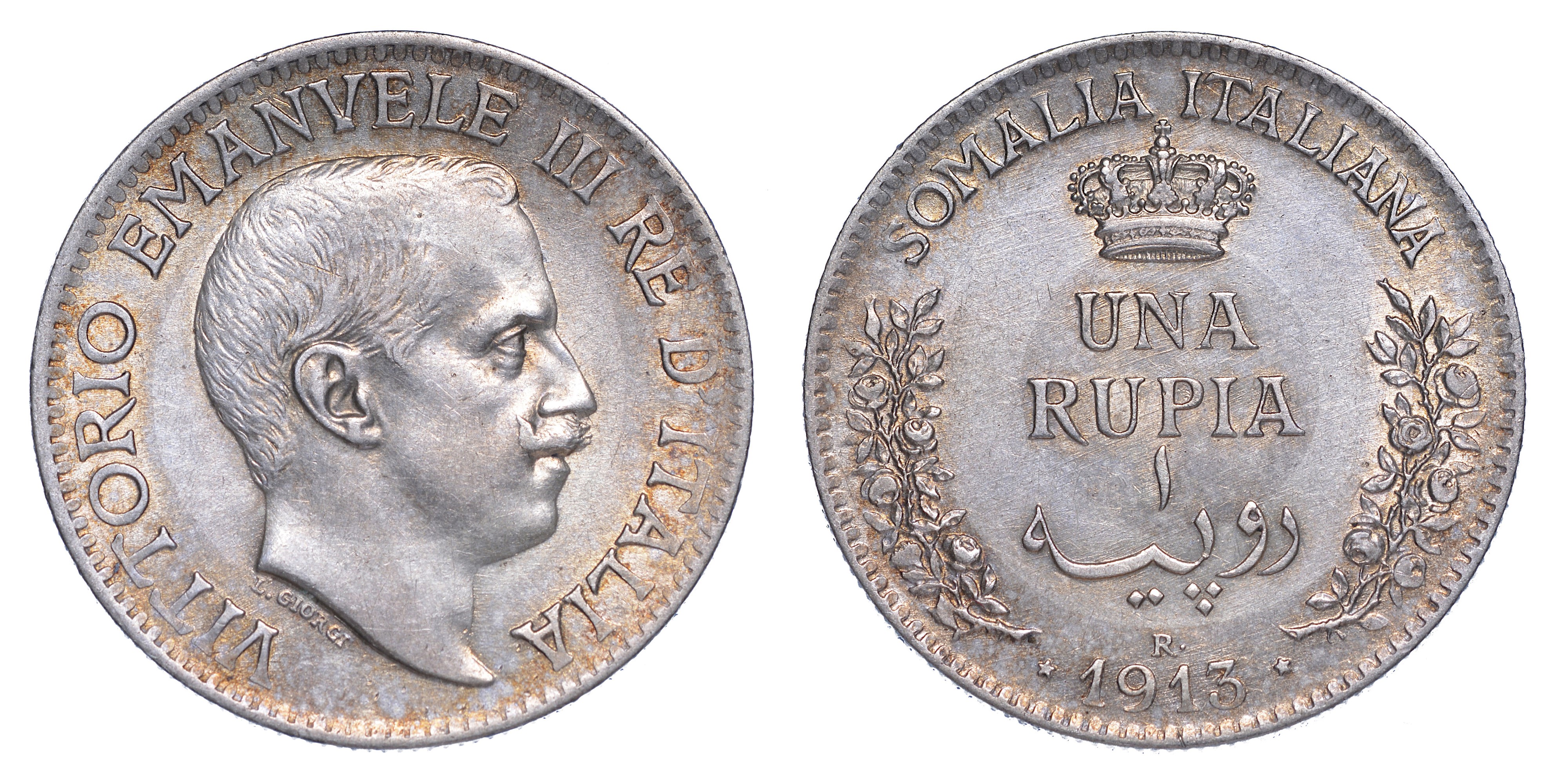 SOMALIA ITALIANA. VITTORIO EMANUELE III DI SAVOIA, 1909-1925. Rupia 1913.