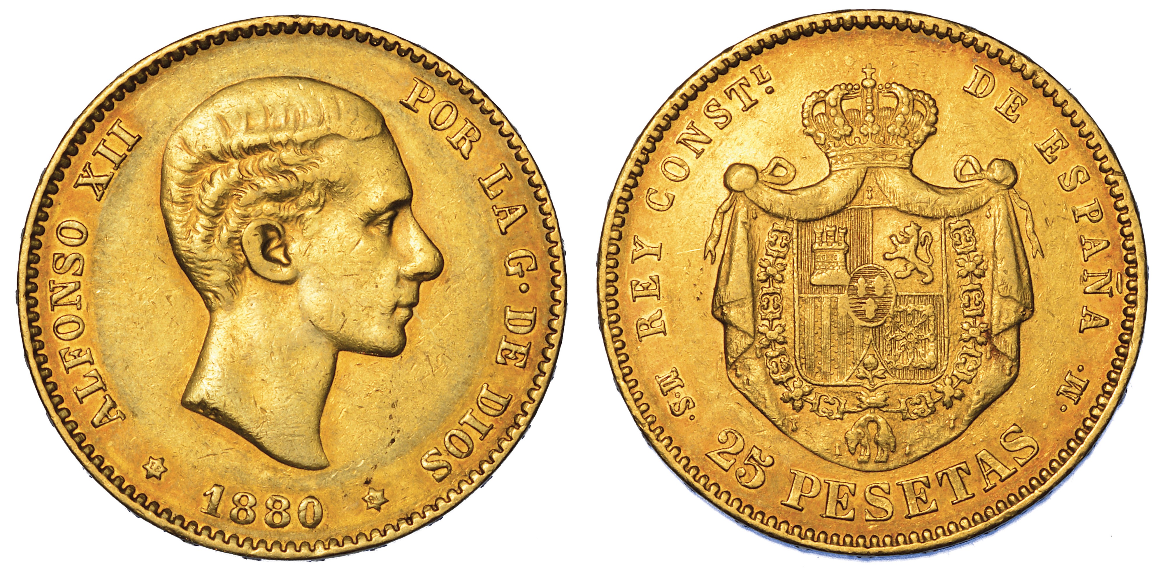 SPAGNA. ALFONSO XII, 1874-1885. 25 Pesetas 1880.
