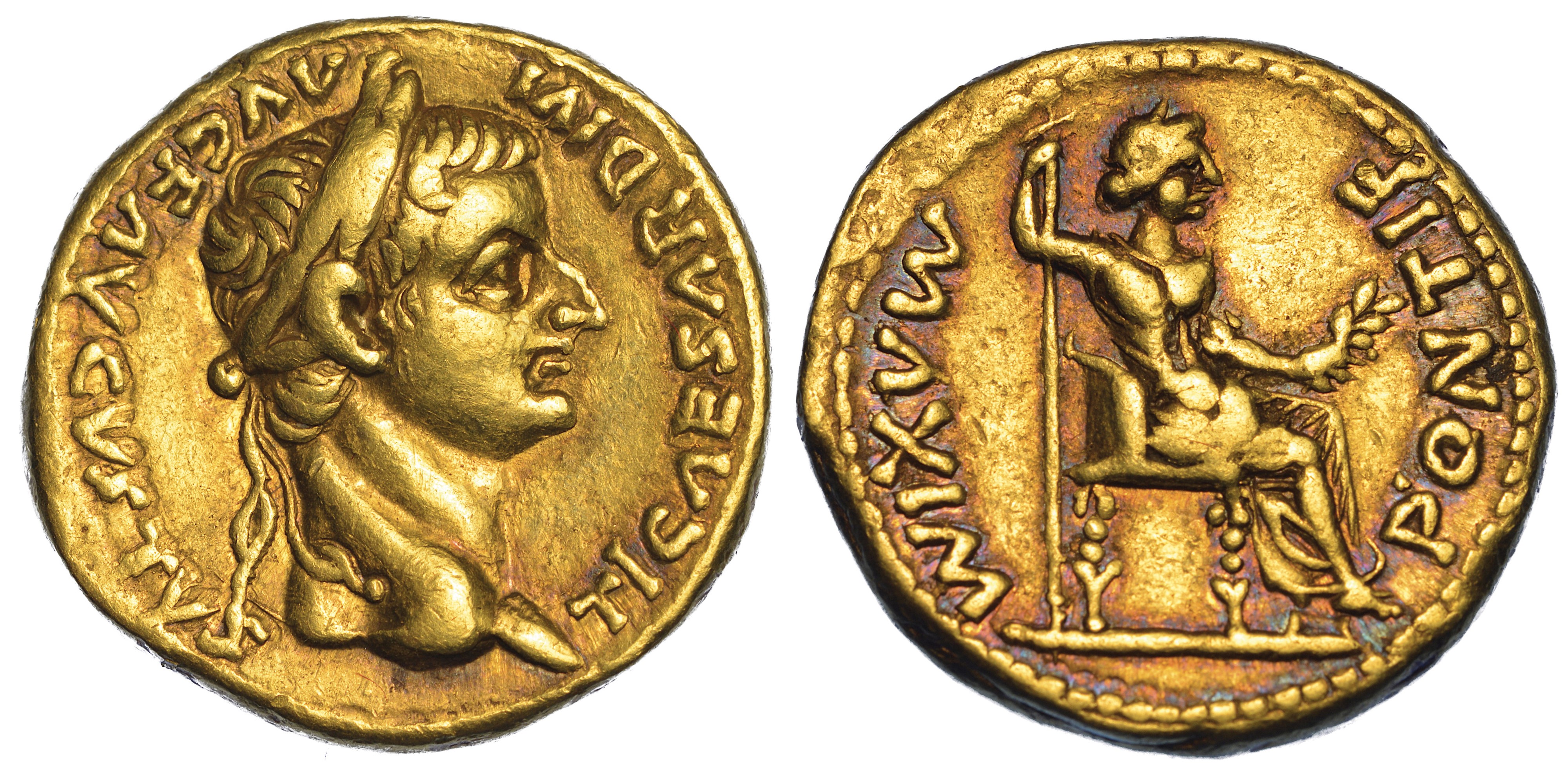 Testa laureata a d. R/ Livia seduta a d. tiene fiore e lungo scettro. Calicò 305c. Coh. 15. g. 7,72. Diam. mm. 17,91. Oro. Migliore di BB