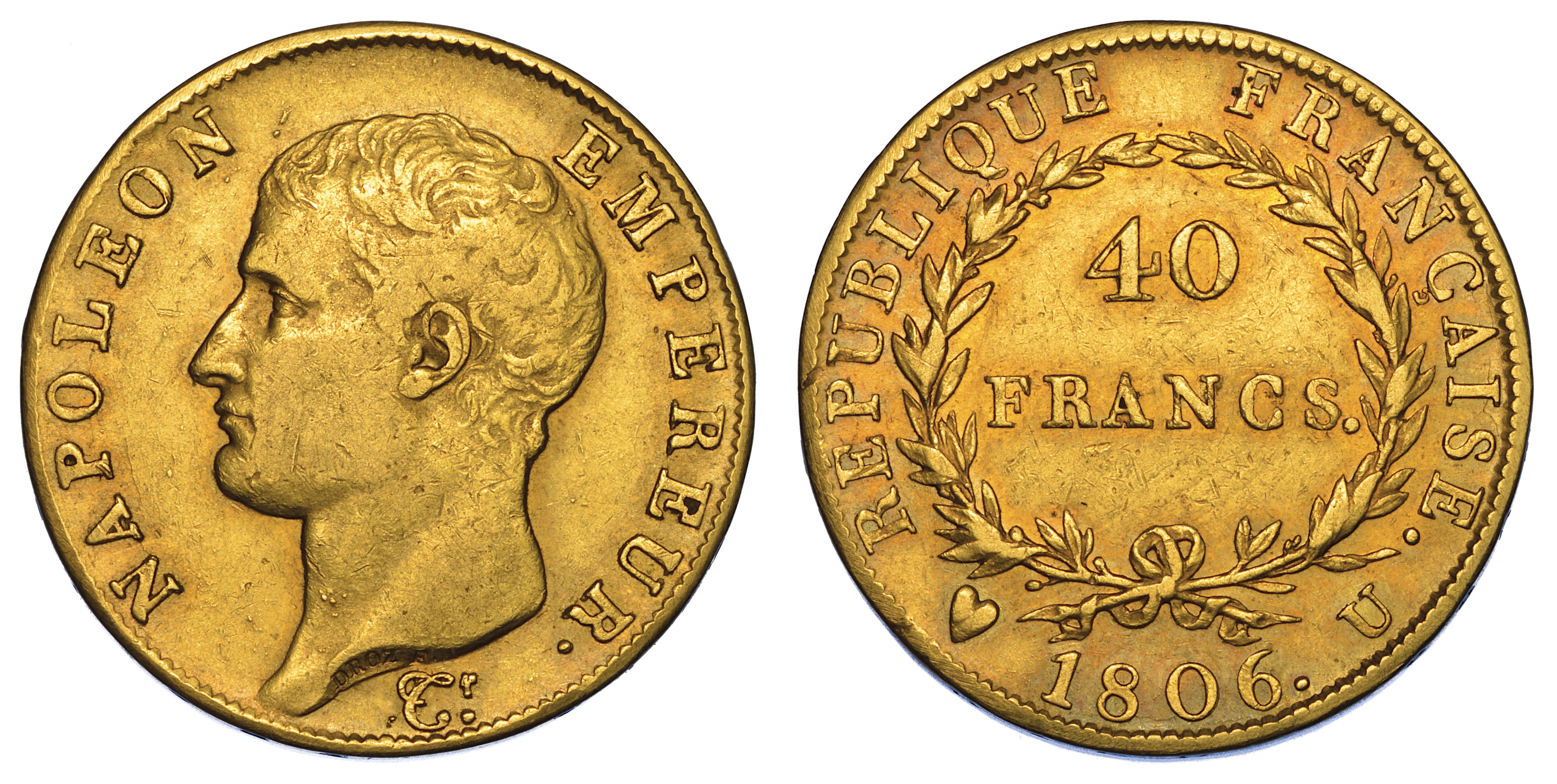 TORINO. NAPOLEONE I IMPERATORE, 1805-1814. 40 Francs 1806.