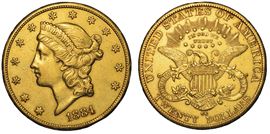 USA. REPUBLIC. 20 Dollars “Liberty Head” 1884. Zecca di Carson City, Nevada.