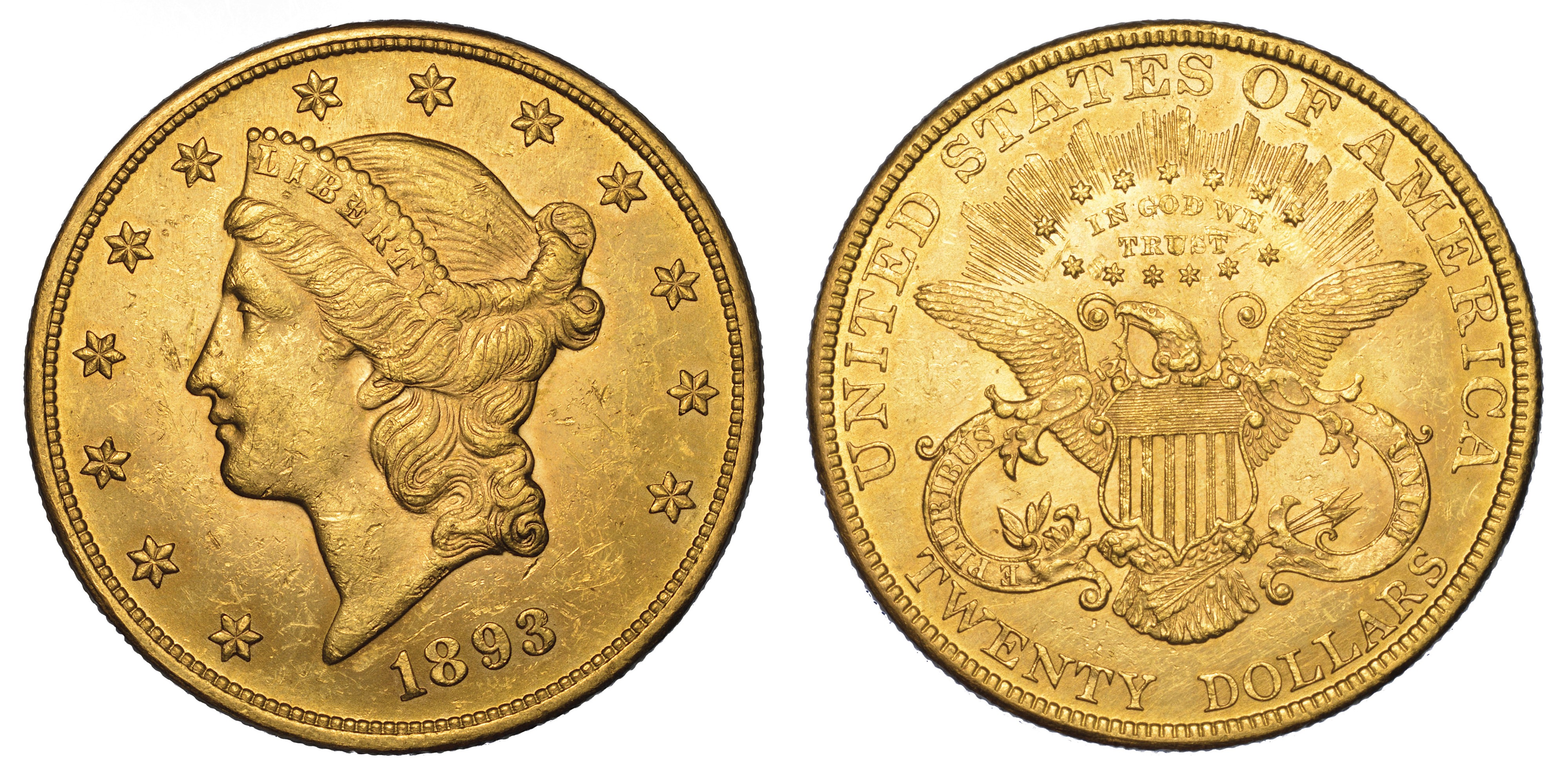 USA. REPUBLIC. 20 Dollars “Liberty Head” 1893. Zecca di Philadephia, Pennsylvania.