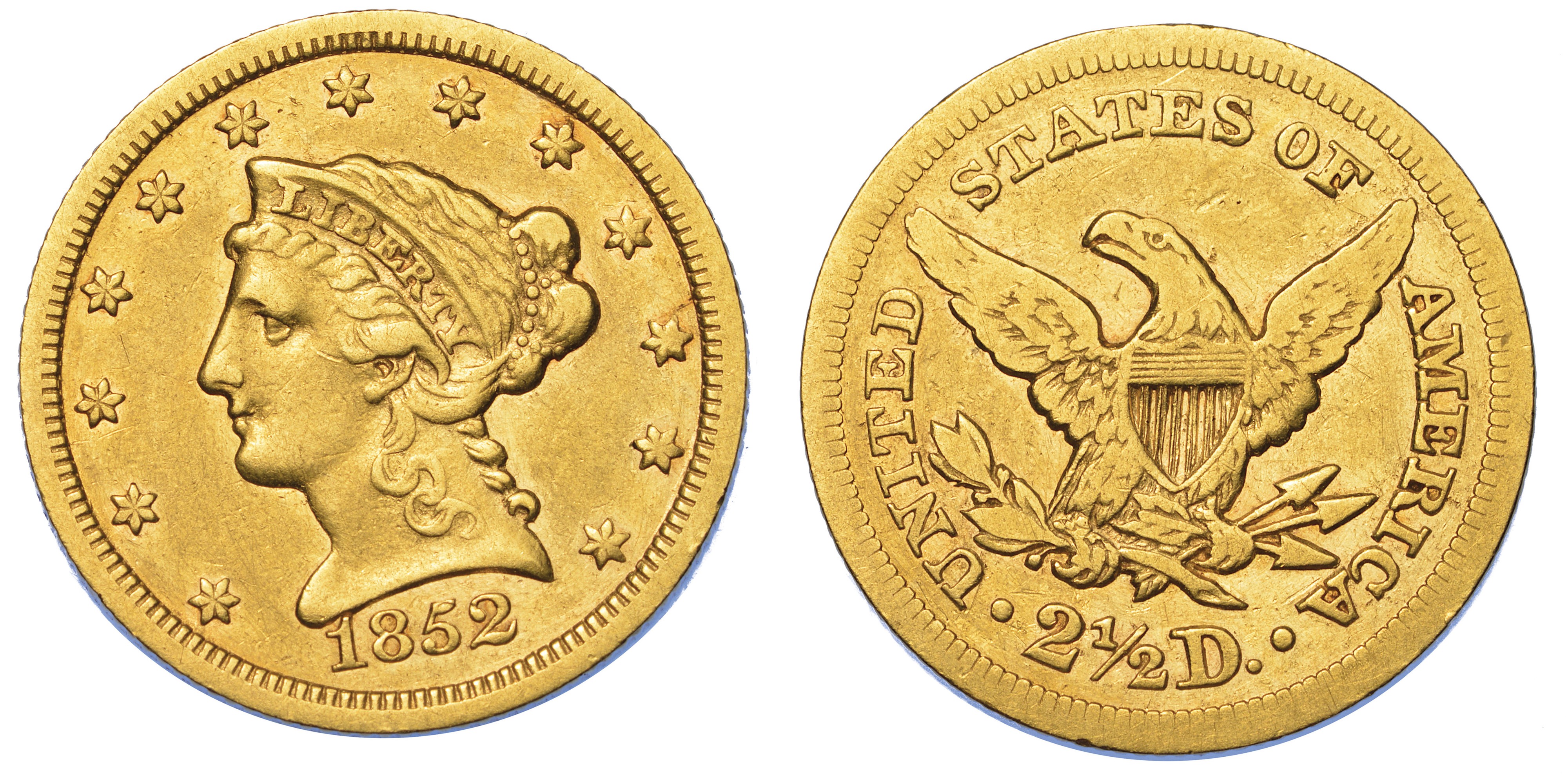 USA. REPUBLIC. 2,5 Dollars “Coronet Head” 1852. Zecca di Philadephia, Pennsylvania.