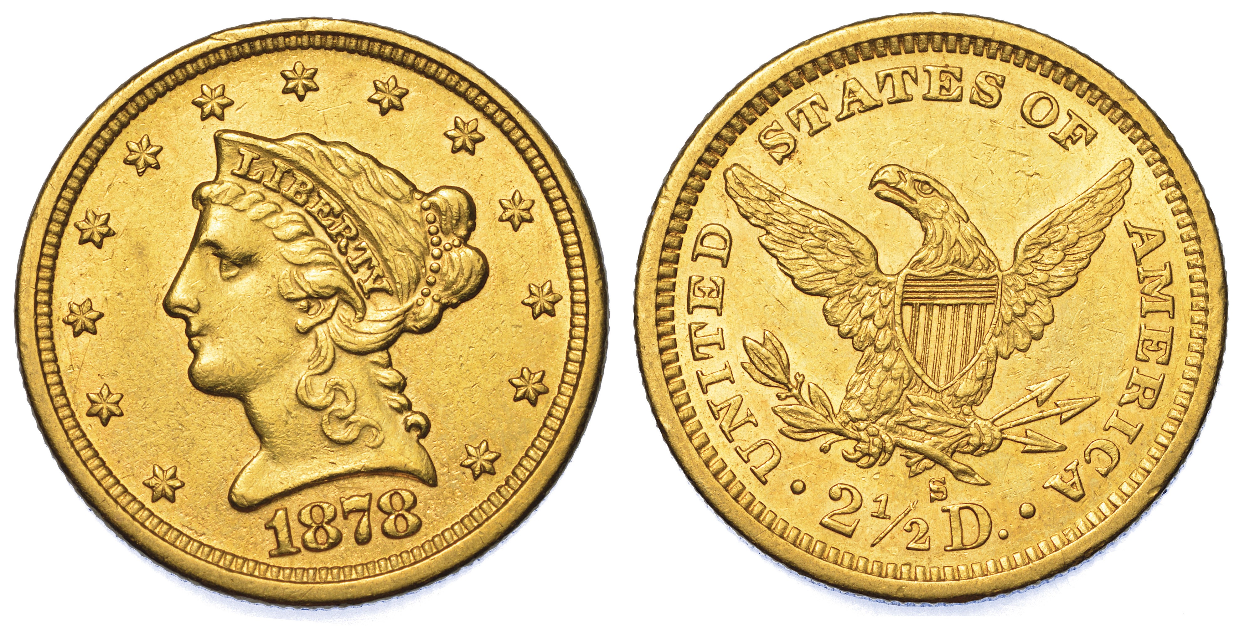 USA. REPUBLIC. 2,5 Dollars “Coronet Head” 1878. Zecca di San Francisco, California.