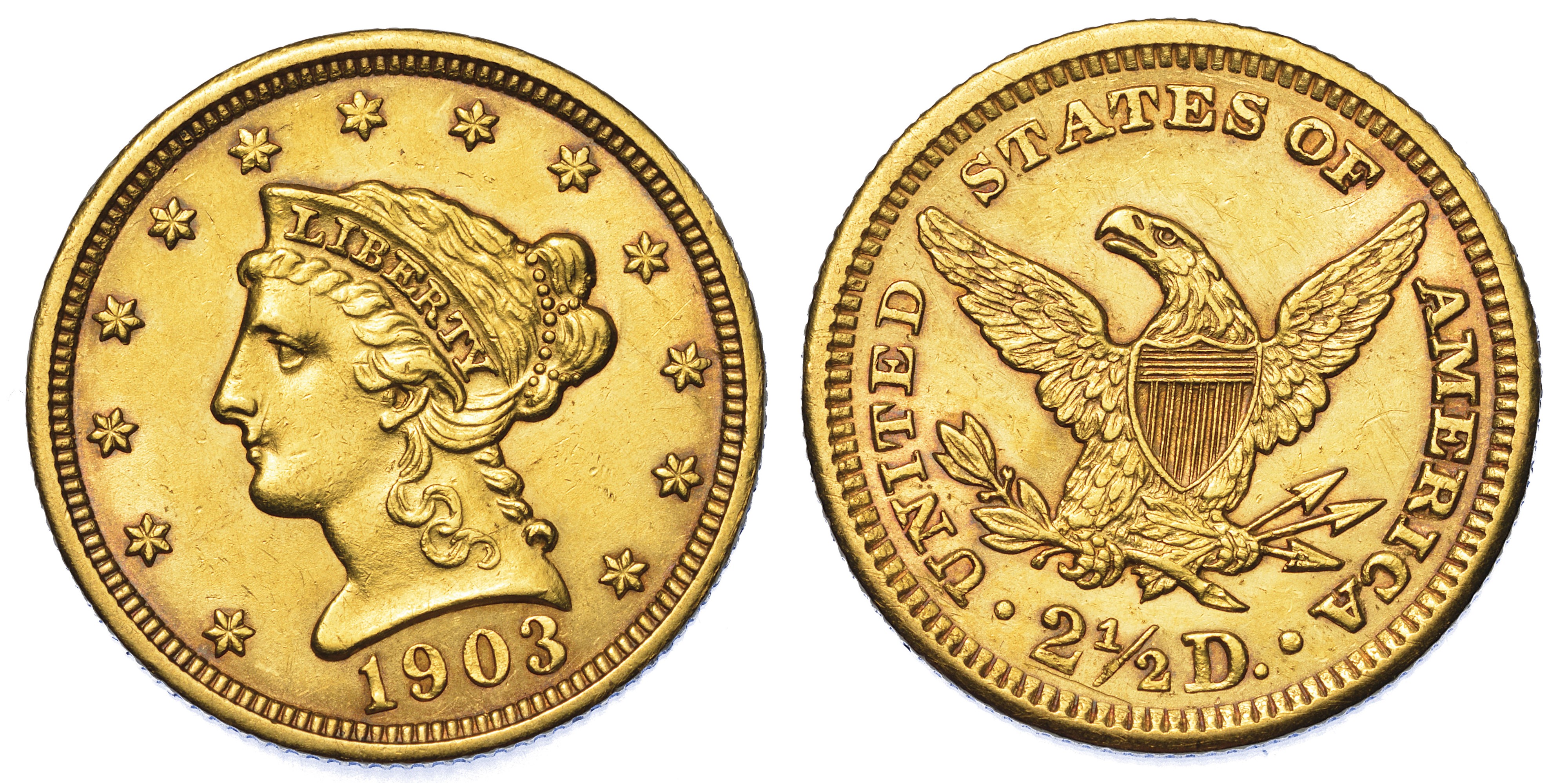 USA. REPUBLIC. 2,5 Dollars “Coronet Head” 1903. Zecca di Philadephia, Pennsylvania.