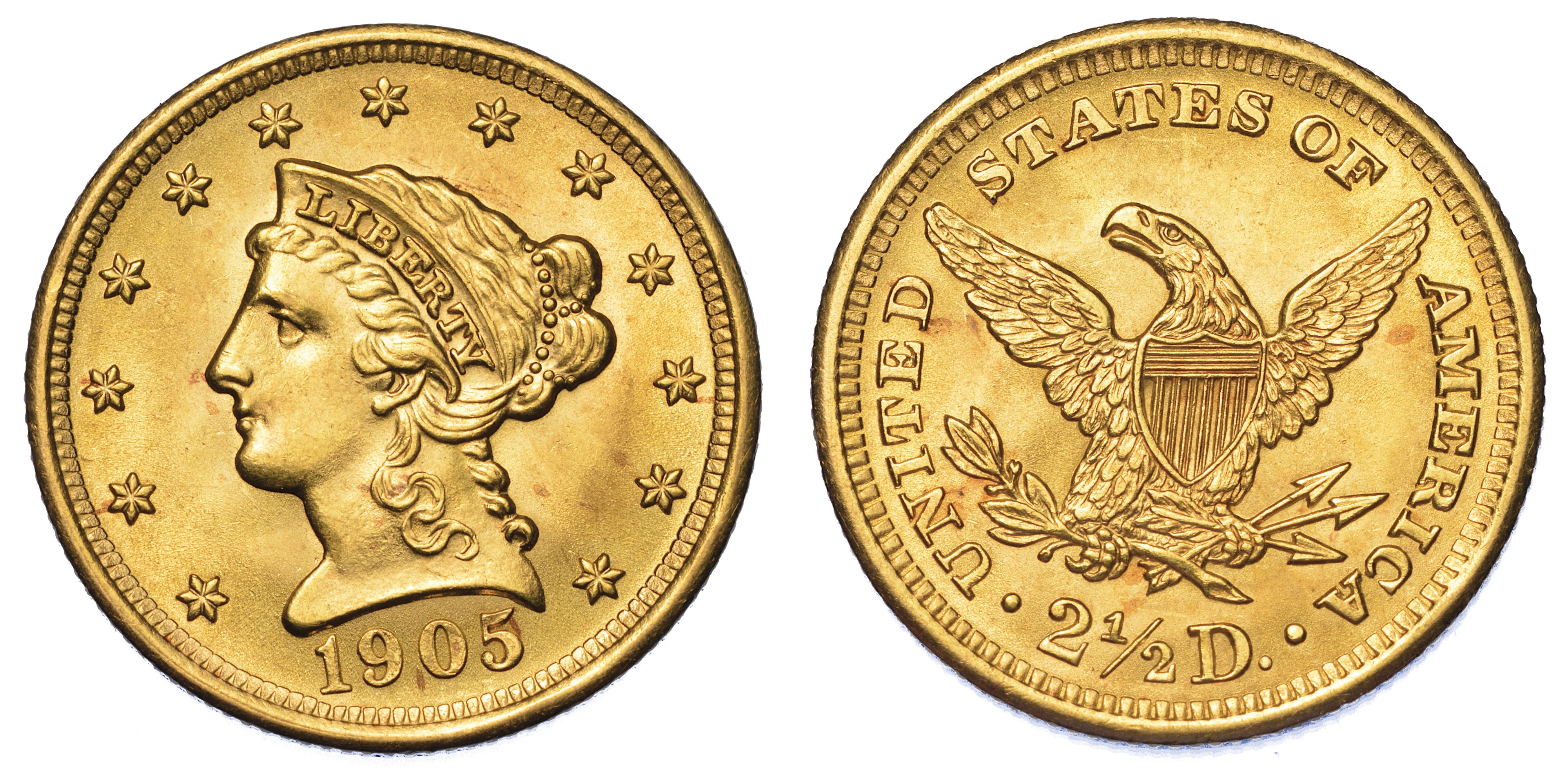 USA. REPUBLIC. 2,5 Dollars “Coronet Head” 1905. Zecca di Philadephia, Pennsylvania.