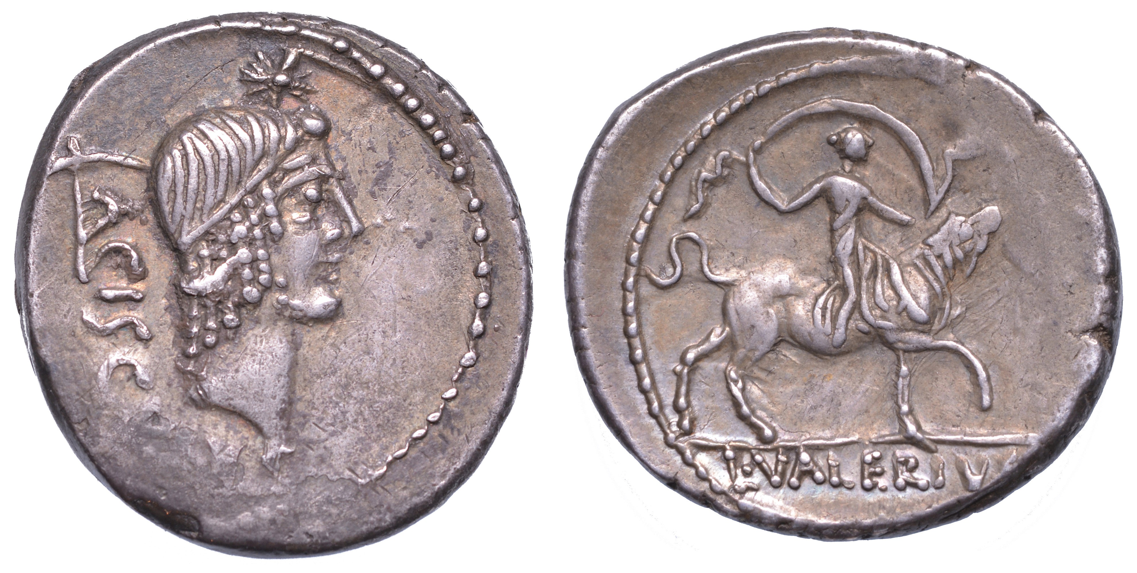 VALERIA. L. Valerius Acisculus, anno 45 a.C. Denario.