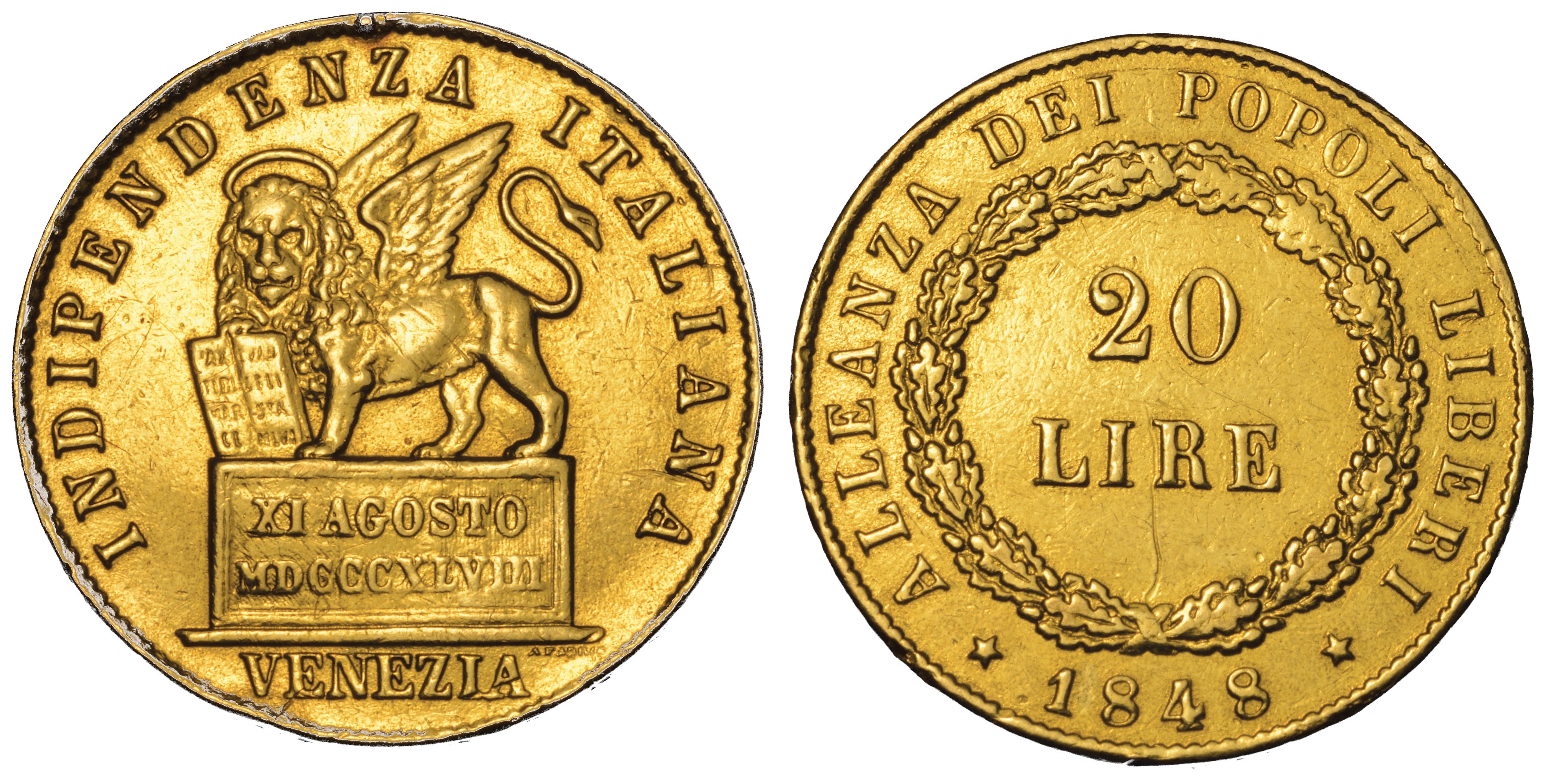 VENEZIA. GOVERNO PROVVISORIO DI VENEZIA, 1848-1849. 20 Lire 1848.