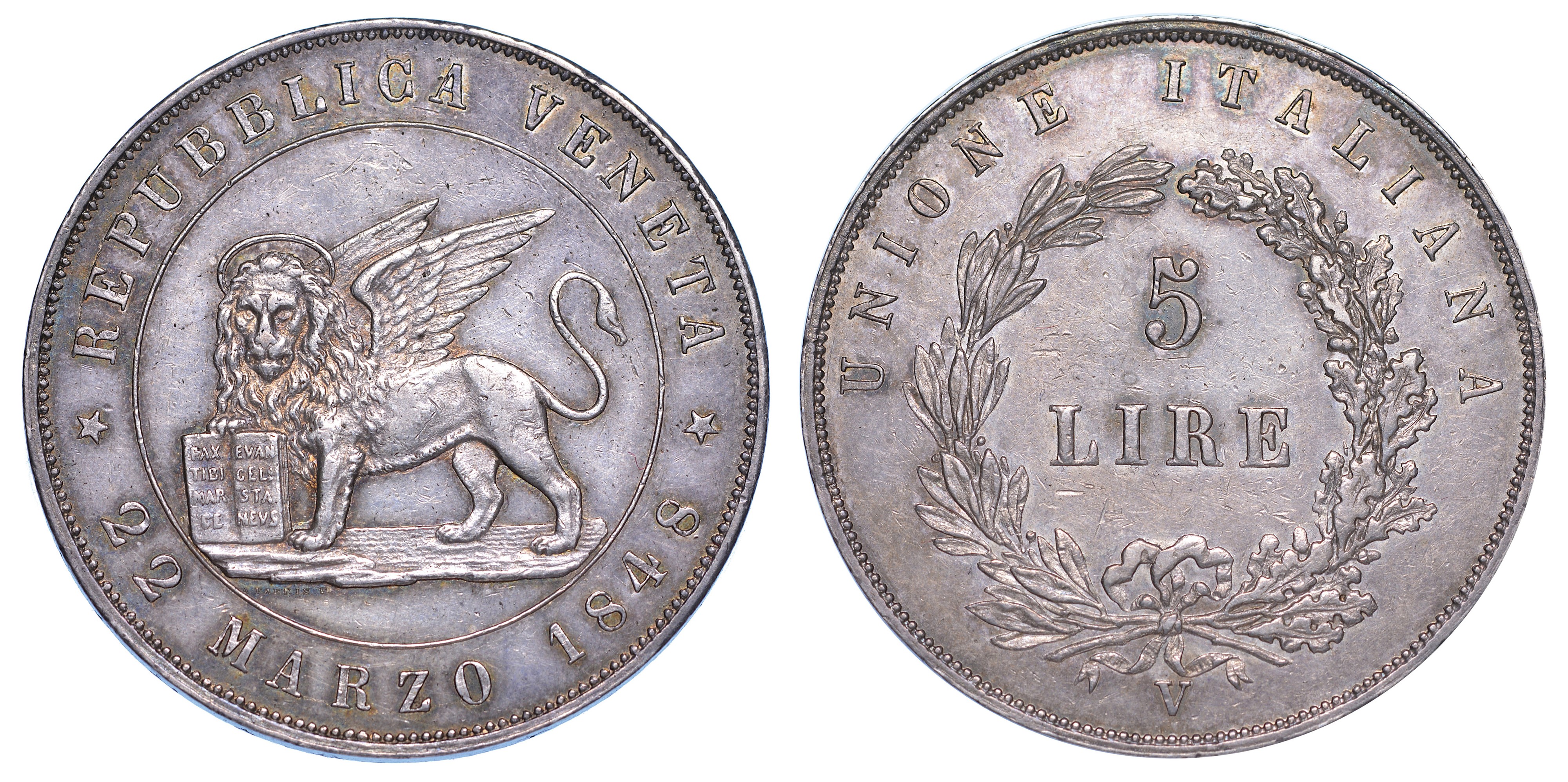 VENEZIA. GOVERNO PROVVISORIO DI VENEZIA, 1848-1849. 5 Lire 1848 (I tipo).