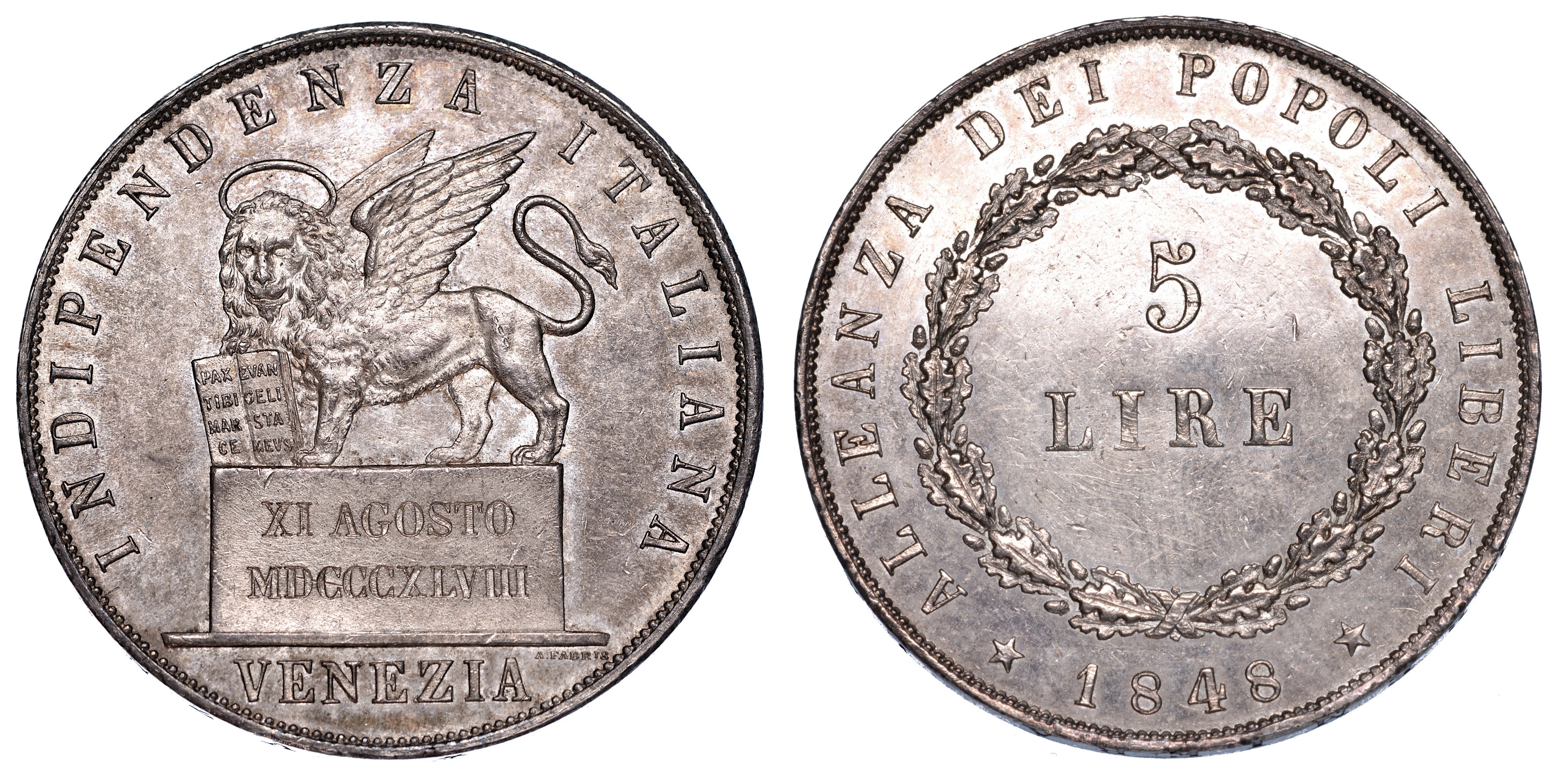 VENEZIA. GOVERNO PROVVISORIO DI VENEZIA, 1848-1849. 5 Lire 1848 (II tipo).