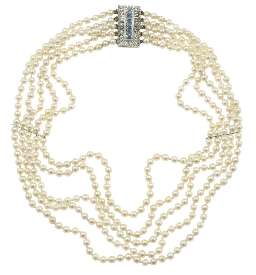 Cultured pearl and sapphire necklace
